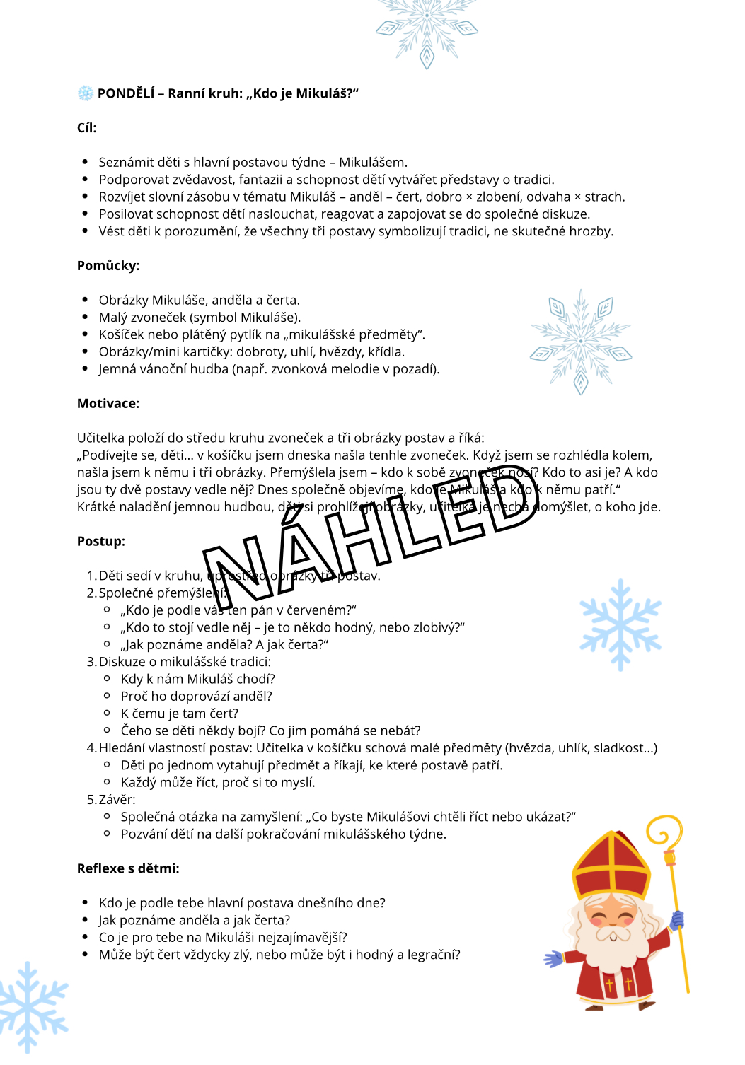 PŘICHÁZÍ K NÁM MIKULÁŠ – Týdenní příprava do MŠ🎅❄️