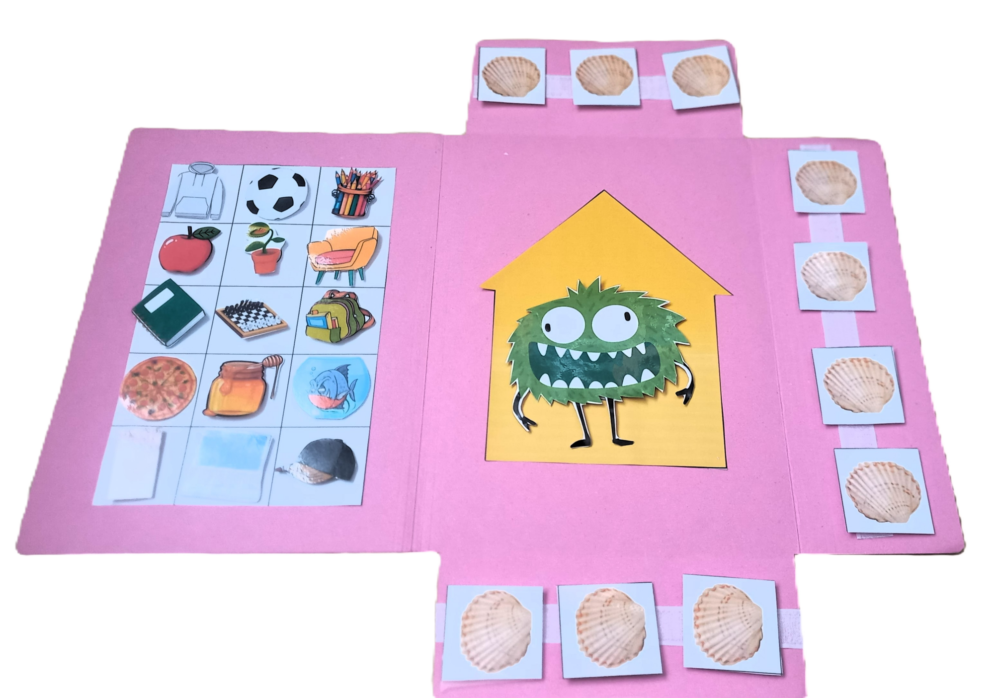 6) VYTISKNĚTE S. 7 (HUGO), S. 8 (MUŠLE) A S. 9 (OBRÁZKY) V POTŘEBNÉM MNOŽSTVÍ, ZALAMINUJTE JE A VYSTŘÍHEJTE (MUŠLE STŘÍHEJTE NA ČTVERCE).