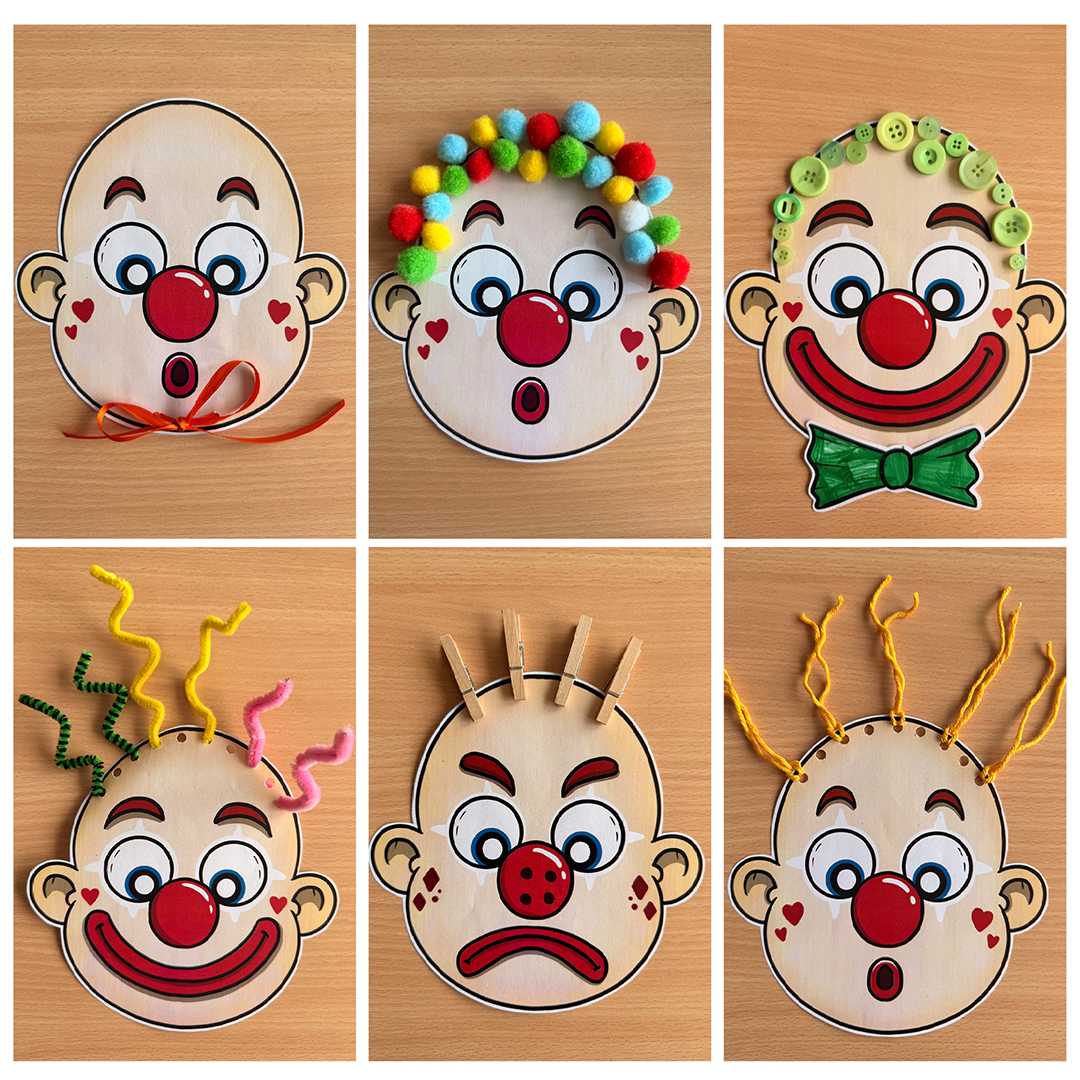 KLAUNI (barevná a černobílá varianta, A4 + A5 formát) + šablona na mašle.