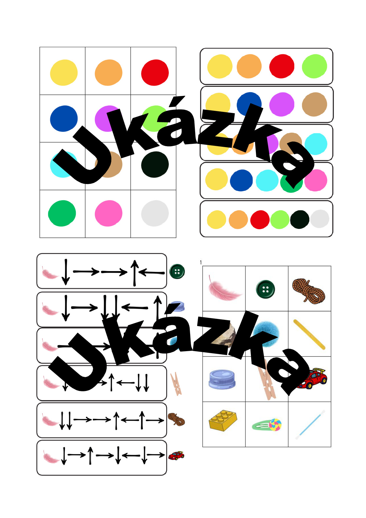 - Cesta podle šipek: Trénink kódování a dekódování. Děti se orientují v síti pomocí směrových šipek – najdou správný cíl, nebo si cestu diktují navzájem.