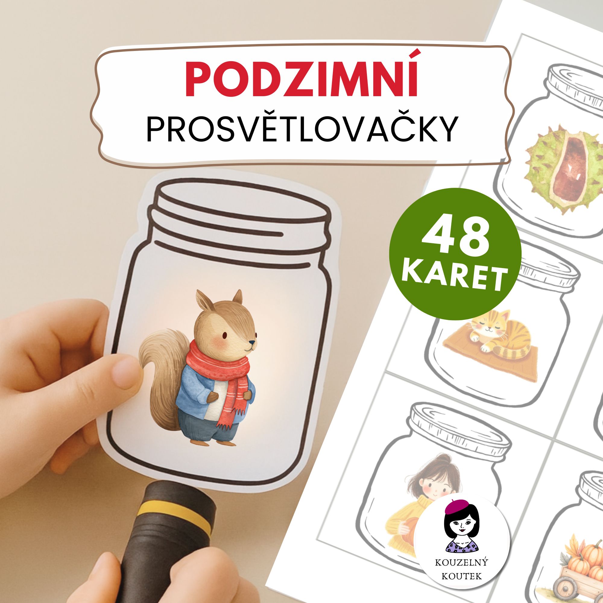 Objevte kouzlo podzimu se sadou 48 prosvětlovacích obrázků, které se rozzáří pod světlem baterky!