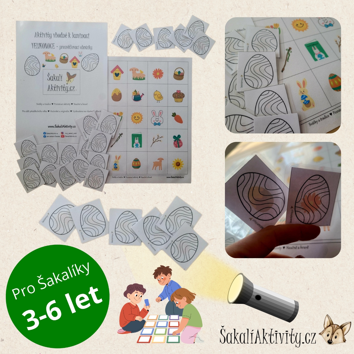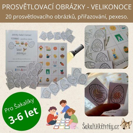 Prosvětlovací obrázky - to je báječná zábava! Každý z 20 obrázků je jiný. Ve velikonočních prosvětlovačkách se schovávají právě typické předměty související s tímto svátkem. Úkolem dítěte může být popis toho co vidí, třídění, přiřazování apod.