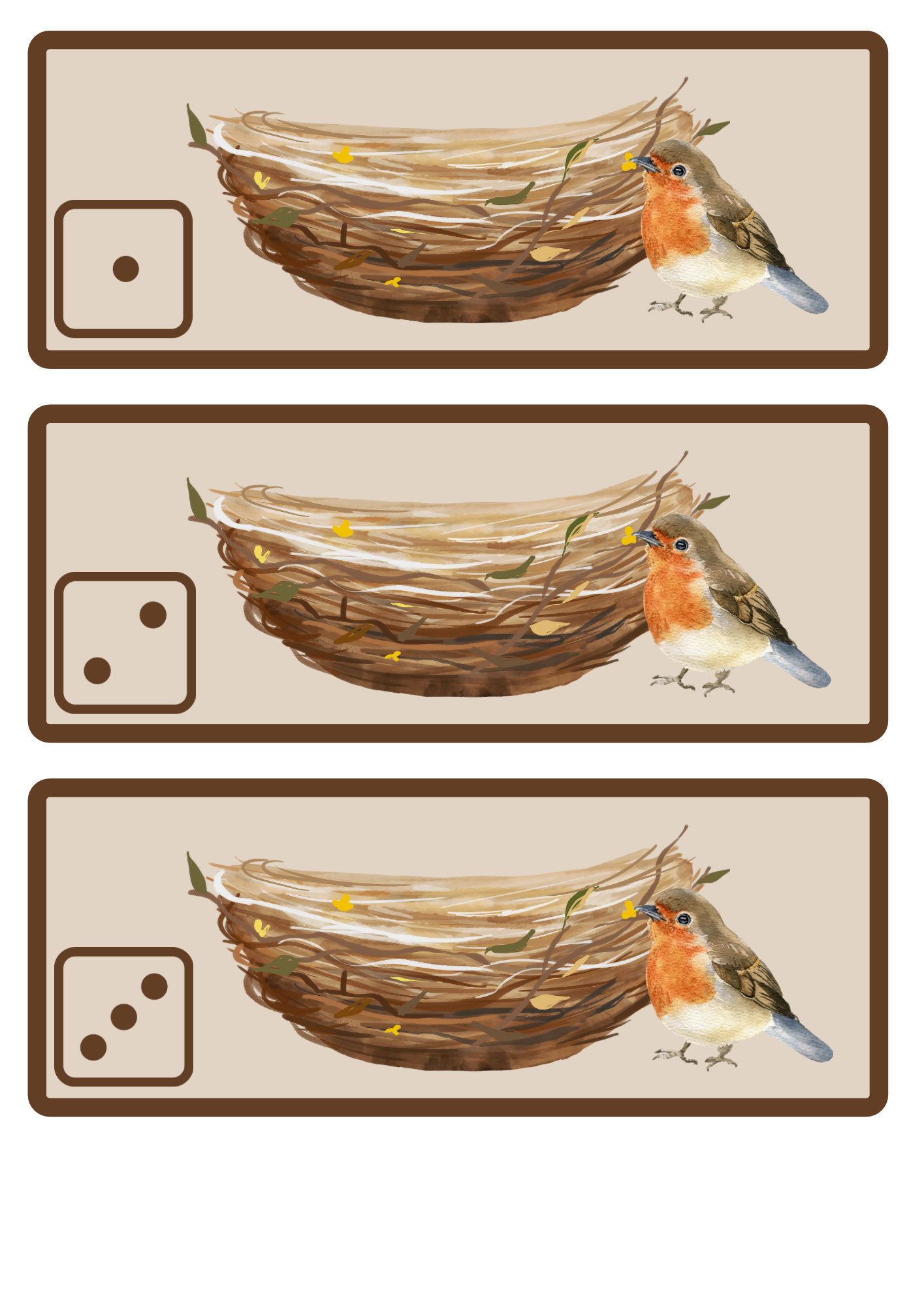 Děti vkládají do hnízda správný počet vajíček podle znázorněných teček na kartě.