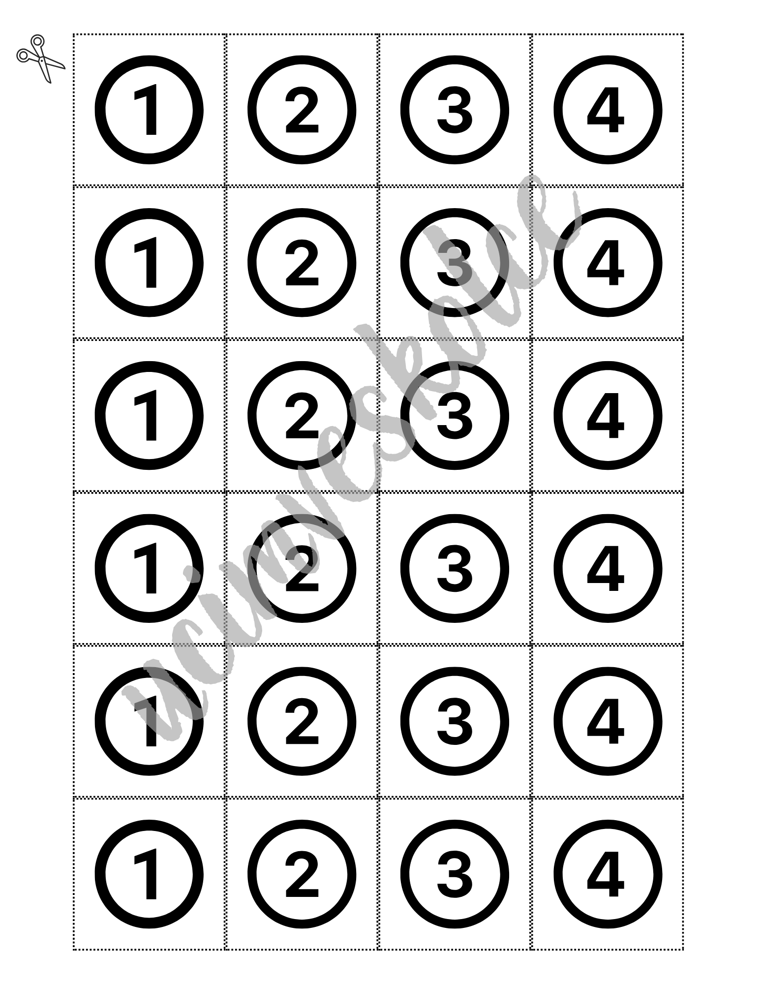 - Ve formě velkých zalaminovaných karet, na které děti přiřazují správné malé kartičky (s číslem / barevným puntíkem).