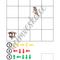 Obsahuje 20 velkých karet (A4 listů) - na každé kartě je zobrazena tabulka, v níž je jedno políčko s obrázkem ptáka a jedno políčko s obrázkem krmítka a malé kartičky (s čísly a barevnými puntíky), které můžete / nemusíte využít.