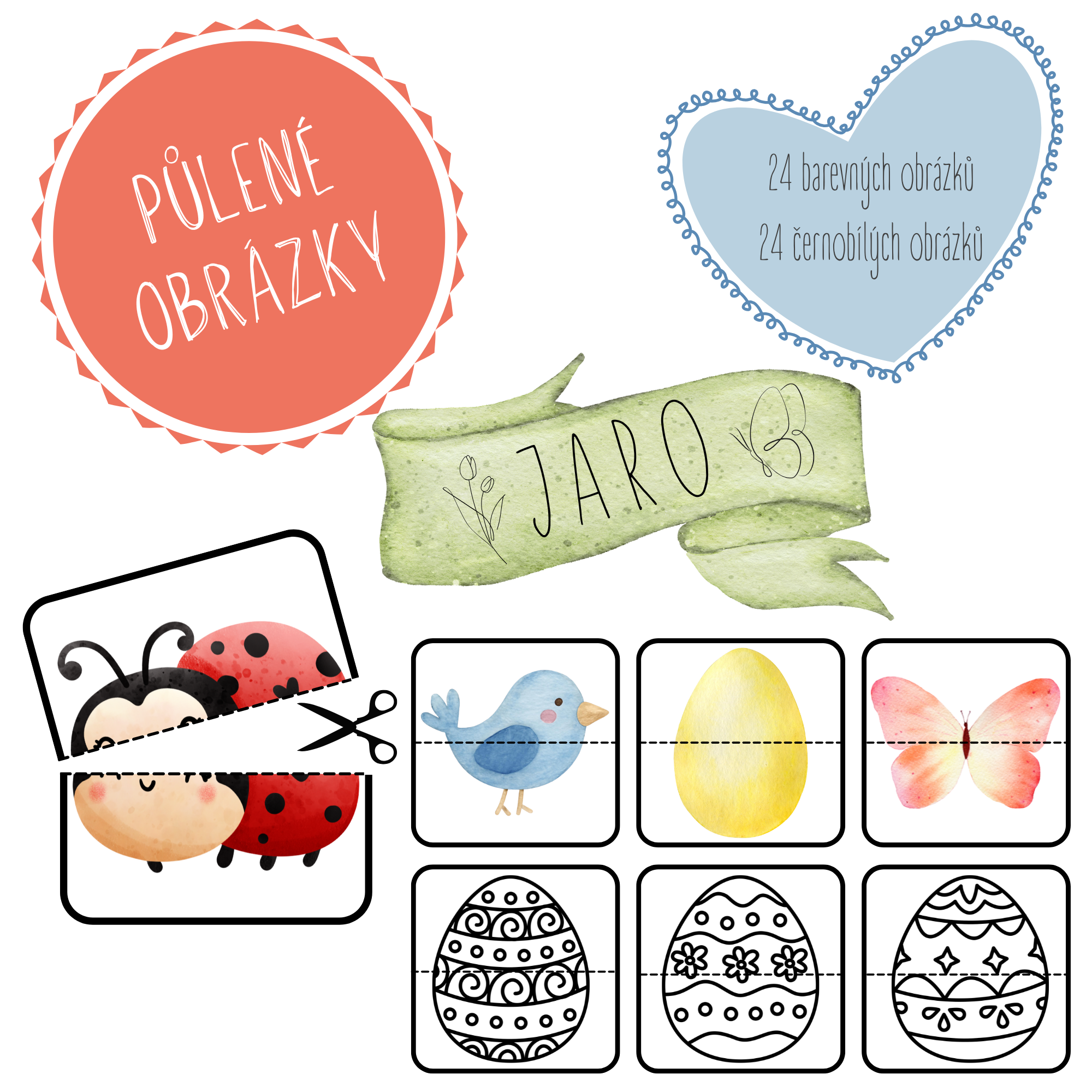 24 barevných a 24 černobílých obrázků.