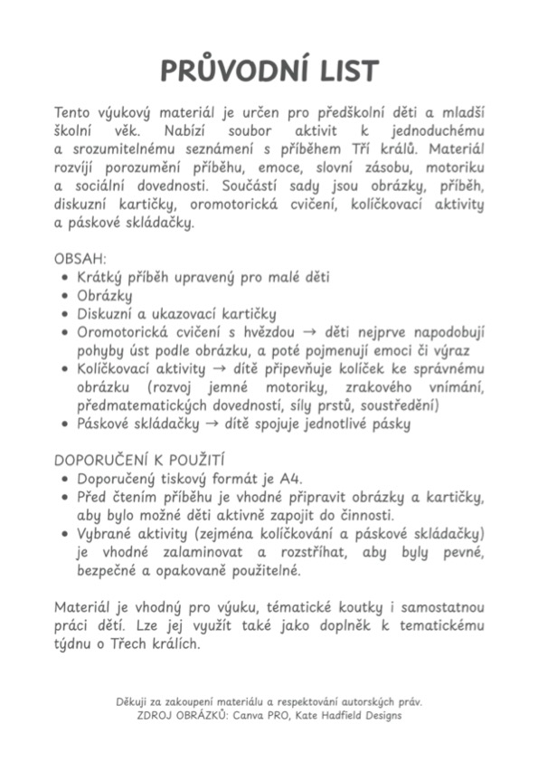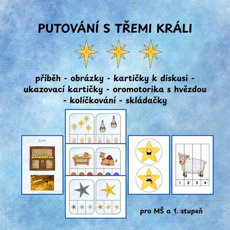 Tato sada aktivit je vytvořena pro předškolní děti a mladší školní věk a nabízí jednoduchý způsob, jak dětem přiblížit příběh Tří králů prostřednictvím prožitku, emocí a hry.