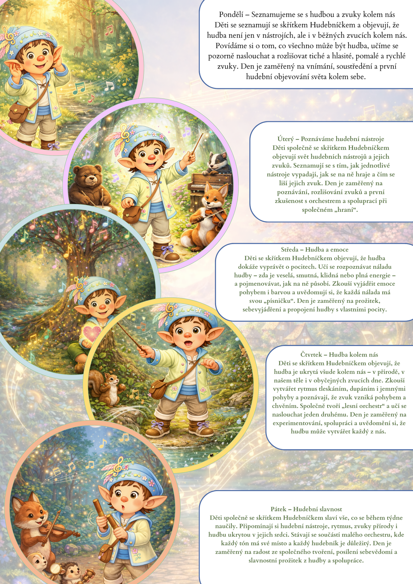 Tento materiál promění obyčejný týden ve kouzelné hudební putování, při kterém děti zjistí, že hudba je opravdu všude kolem nás. ✨