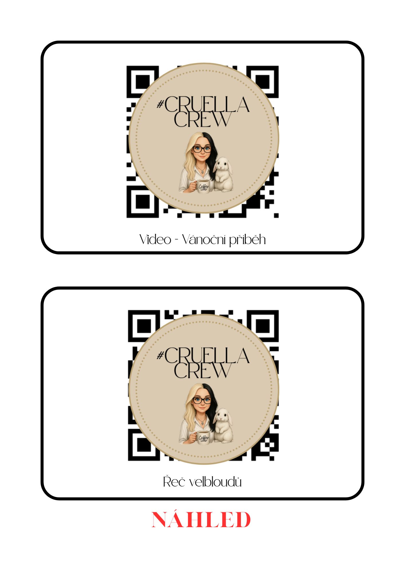 Soubor obsahuje 4 kartičky s QR kódem i s popiskem (hlavně pro paní učitelky pro přehlednost).