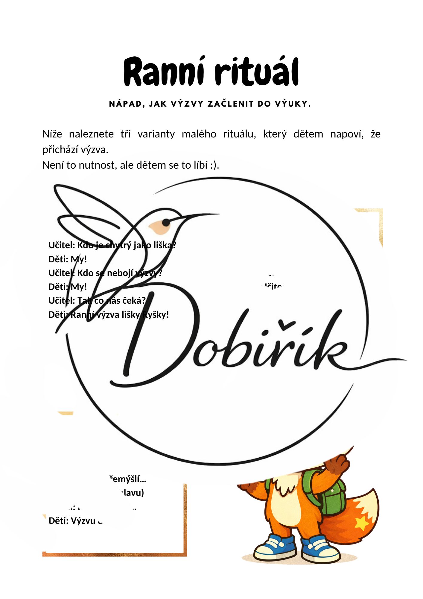 Materiál je flexibilní – lze jej využívat pravidelně i jen v některé dny podle potřeb třídy a časových možností učitele.