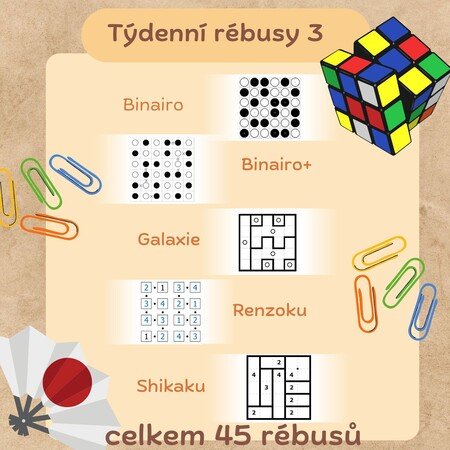 - ke každému strana A4 s pravidly řešení a několik vyřešených rébusů,