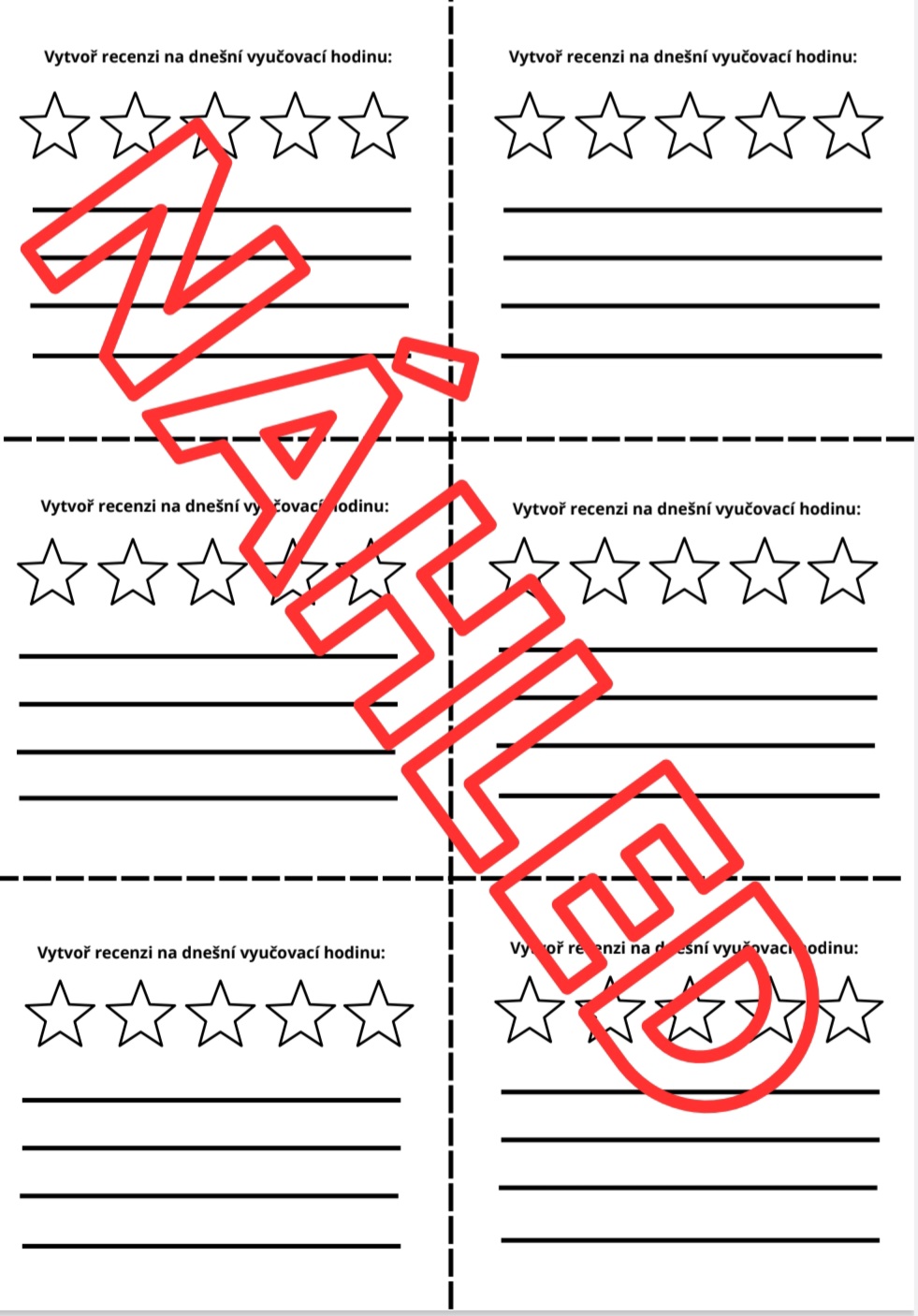 Reflexe vyučovací hodiny- mini pracovní listy