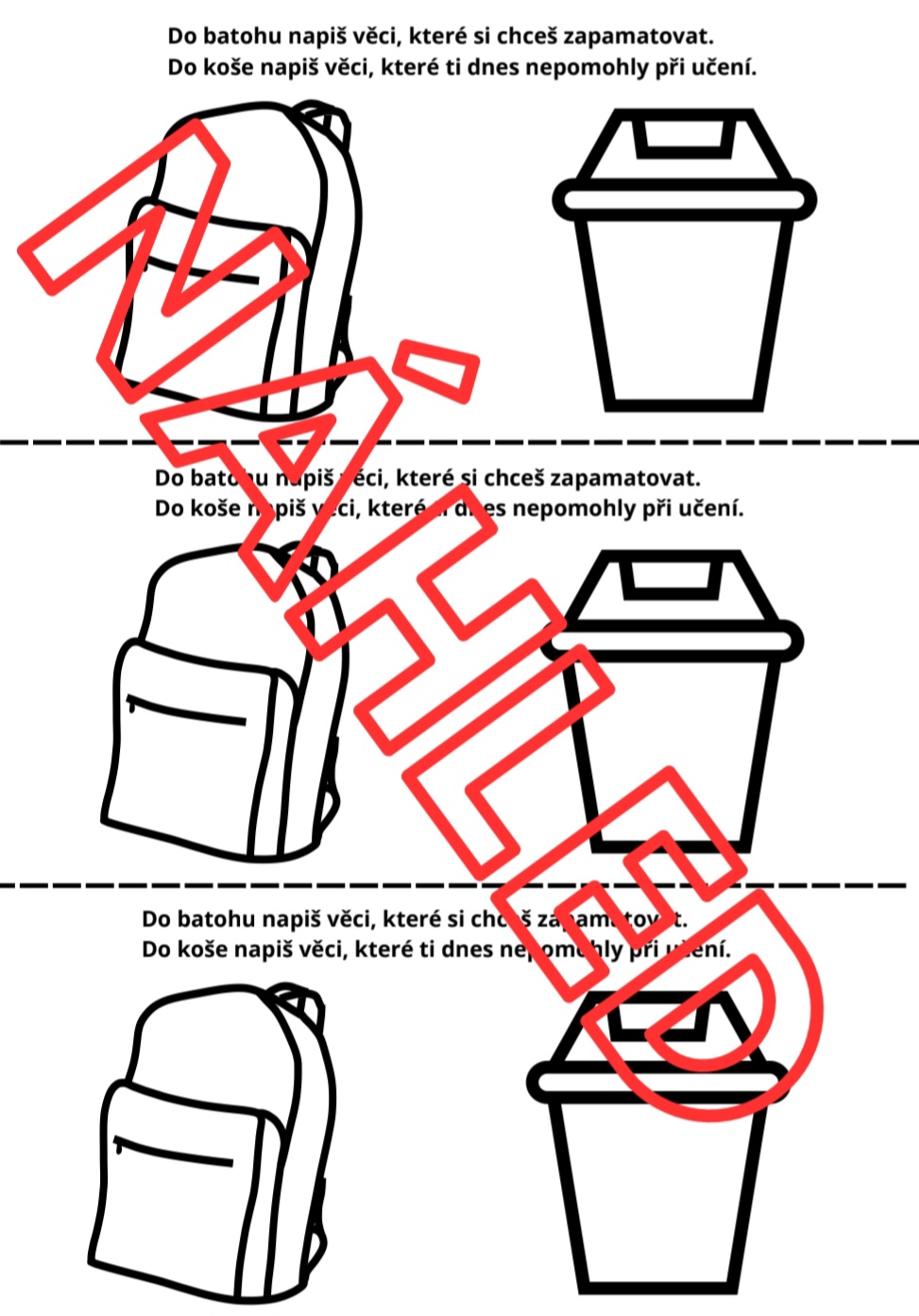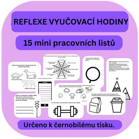Soubor obsahuje 15 mini pracovních listů, které podporují zamyšlení nad průběhem hodiny a vlastním učením. Pracovní listy jsou připraveny k černobílému tisku. Materiál je určen především pro žáky 1. stupně (některé z pracovních listů jsou zvládnutelné i pro žáky první třídy), využití však najde i na 2. stupni základní školy.