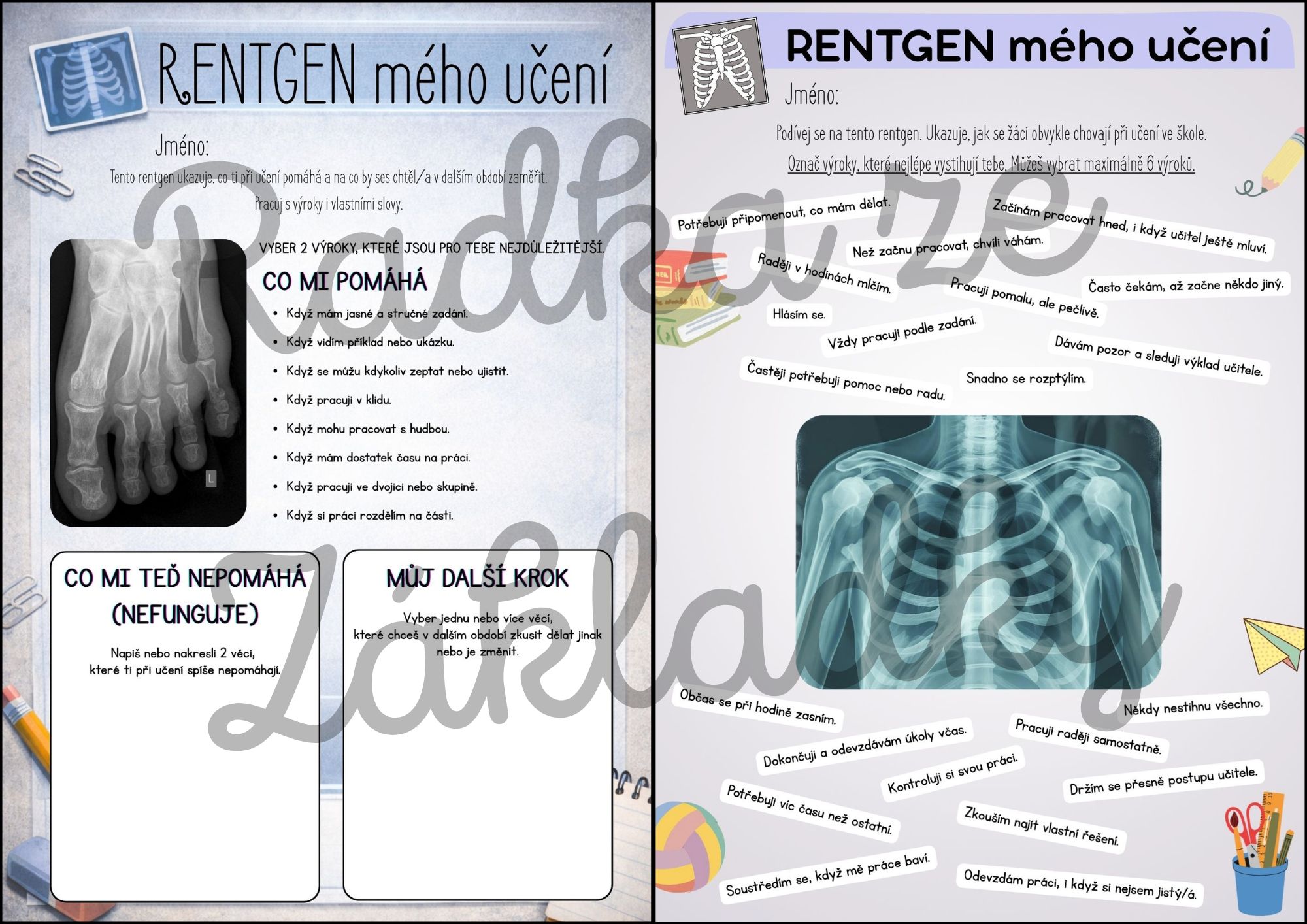 RENTGEN UČENÍ je sada pracovních listů zaměřených na sebehodnocení žáka.