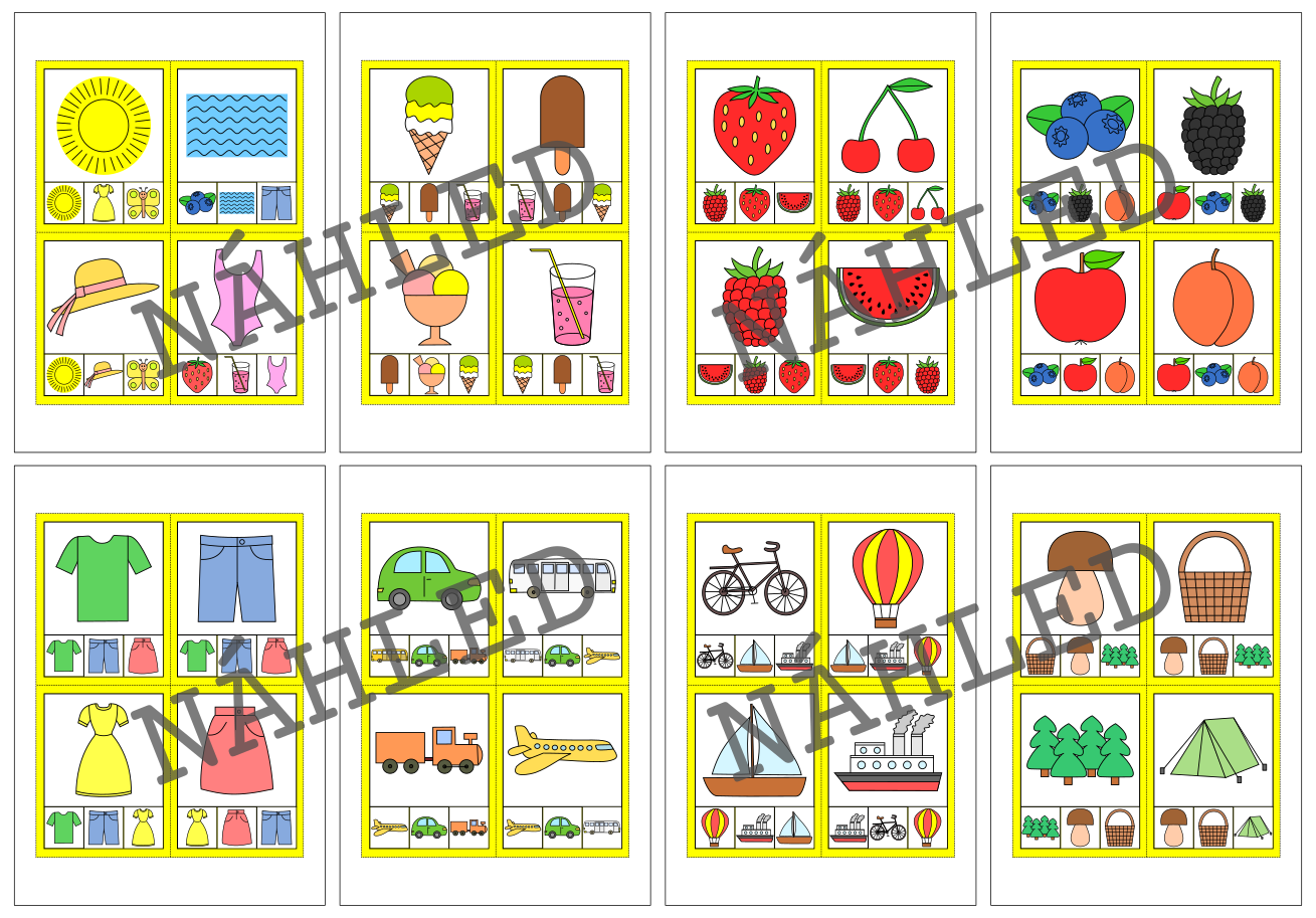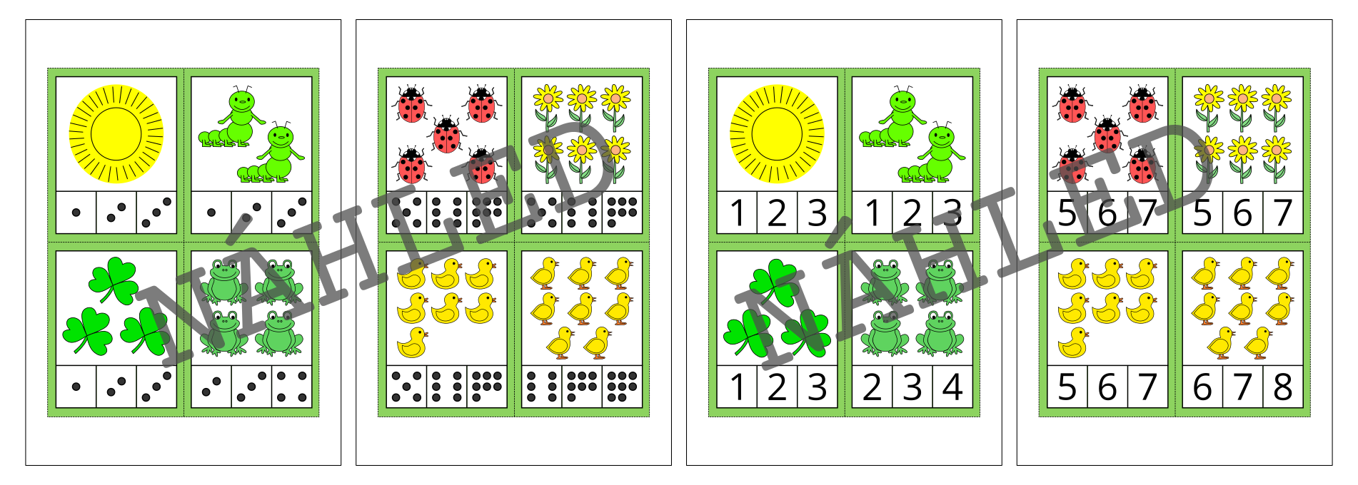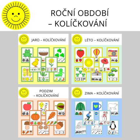 Soubor 4 materiálů, které slouží k procvičení zrakového vnímání a počítání. Tématem je jaro, léto, podzim a zima (roční období).