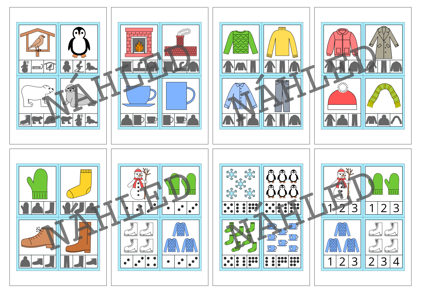 Materiál ZIMA - KOLÍČKOVÁNÍ obsahuje 100 kartiček.