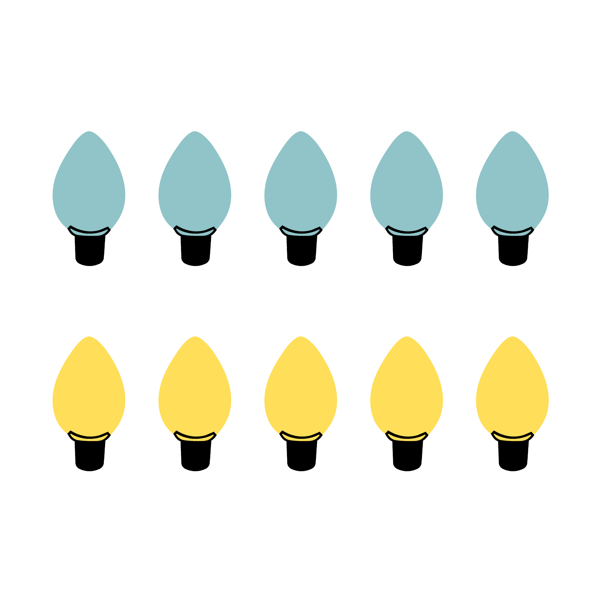 - Barevná světýlka k vystřižení – dostatečný počet pro všechny předlohy.