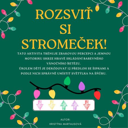 - Jemná motorika: Přesné uchopování a umísťování drobných světýlek na šňůru.