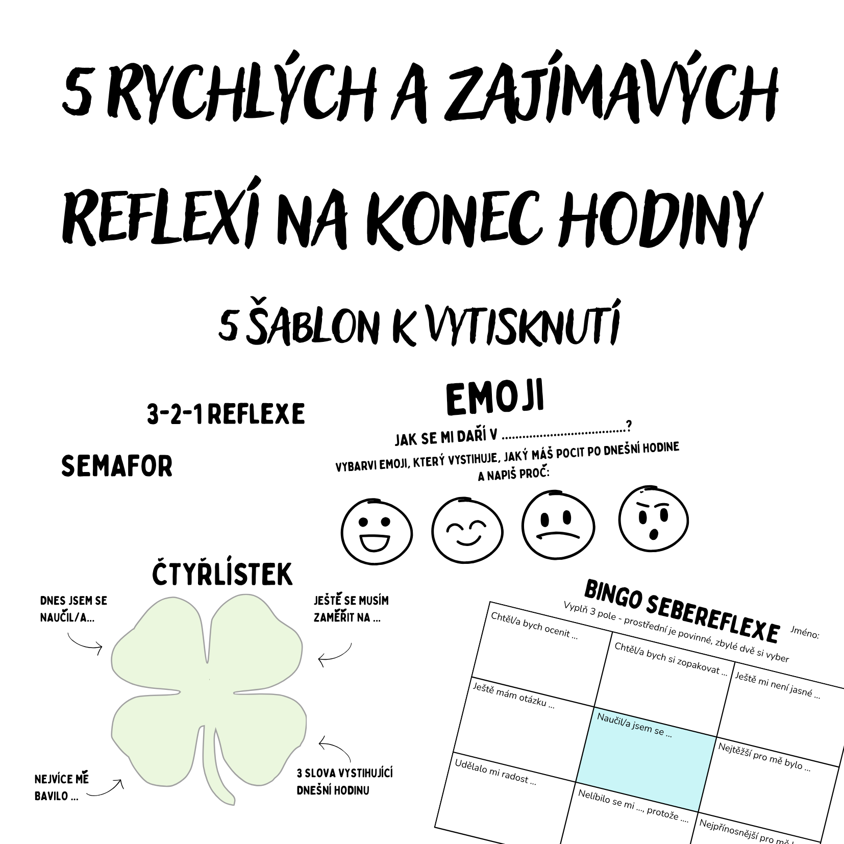 Sada obsahuje pět různých šablon (možné vytisknout barevně i černobíle) na zajímavou a motivační reflexi pro žáky, a to: