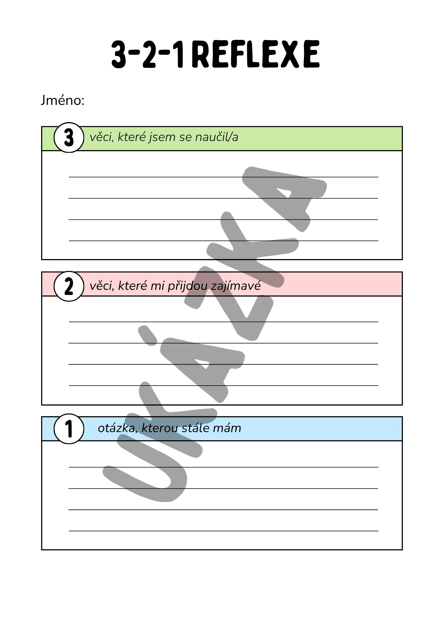 Pomáhá žákům strukturovaně shrnout hodinu – co si zapamatovali, co je zaujalo a jaké otázky ještě mají.