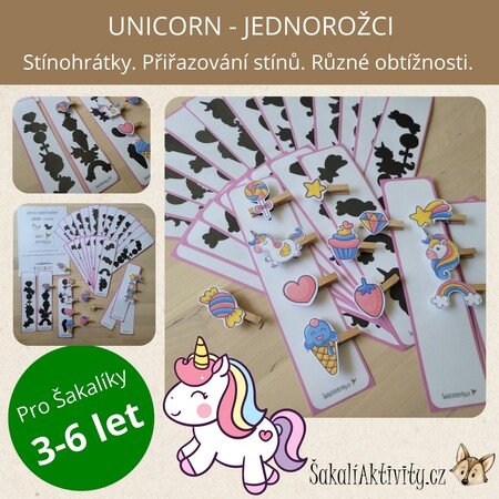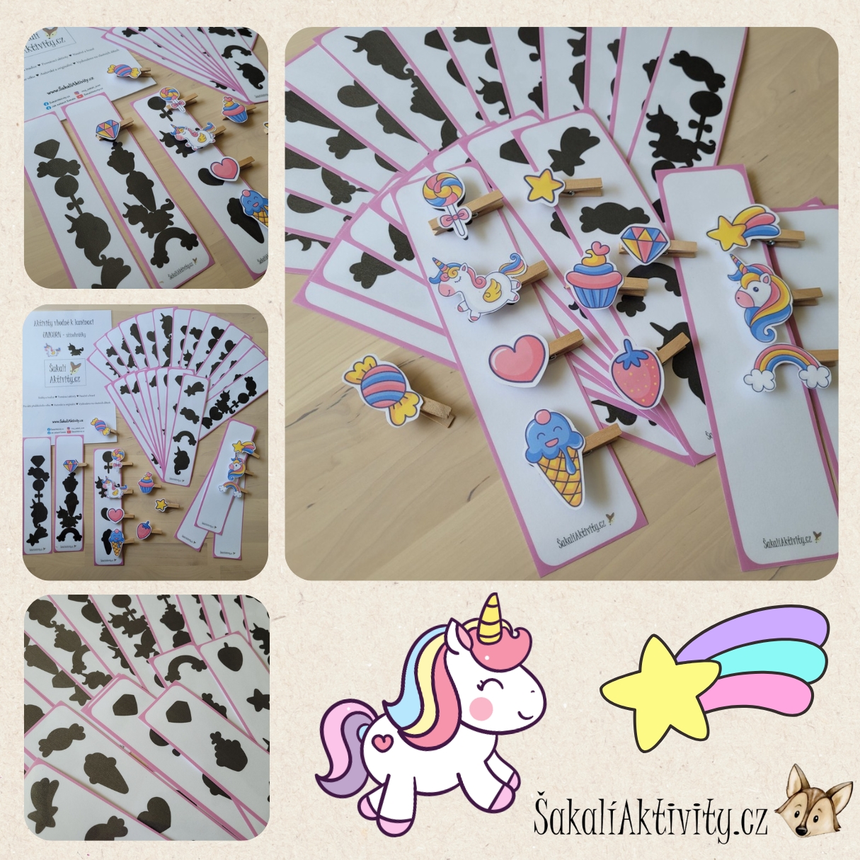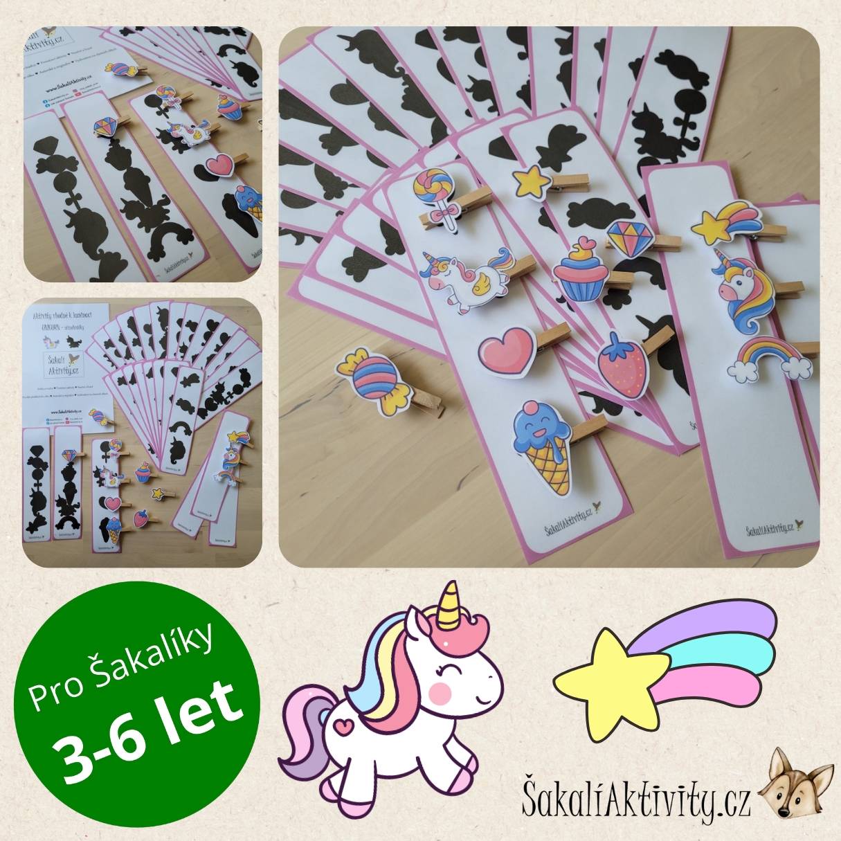 Přiřazování stínů – jednorožci je hravá aktivita, která děti zabaví a zároveň podpoří jejich rozvoj. Úkoly jsou zaměřené na procvičování postřehu, jemné motoriky, schopnosti přiřazování i práci podle předlohy. Vhodná je především pro děti mladšího a předškolního věku, ale své využití najde také v prvním ročníku ZŠ.