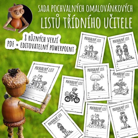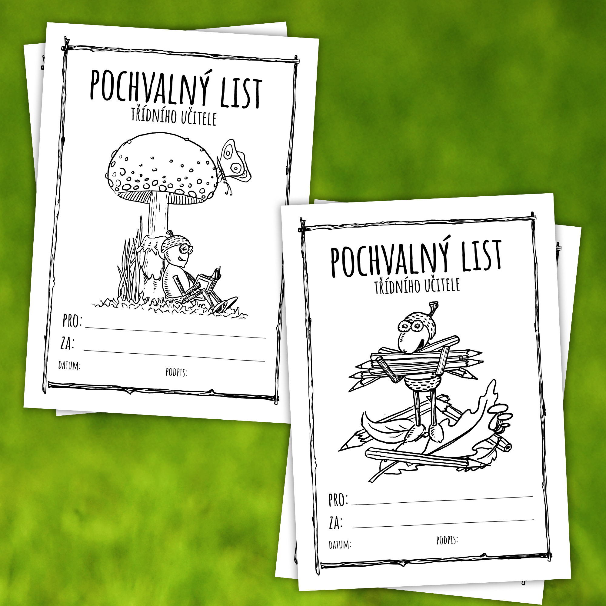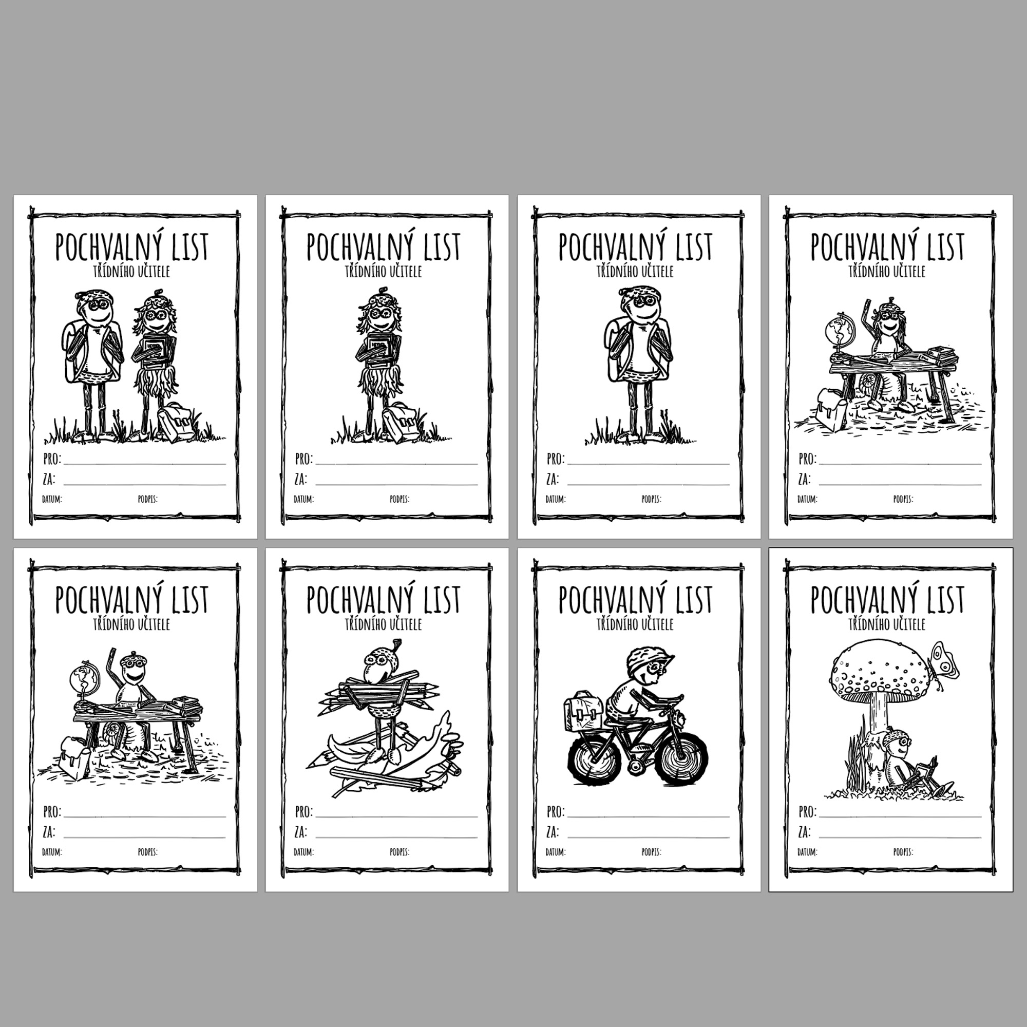 - 8 různých pochvalných listů s dubánky ve školním prostředí.