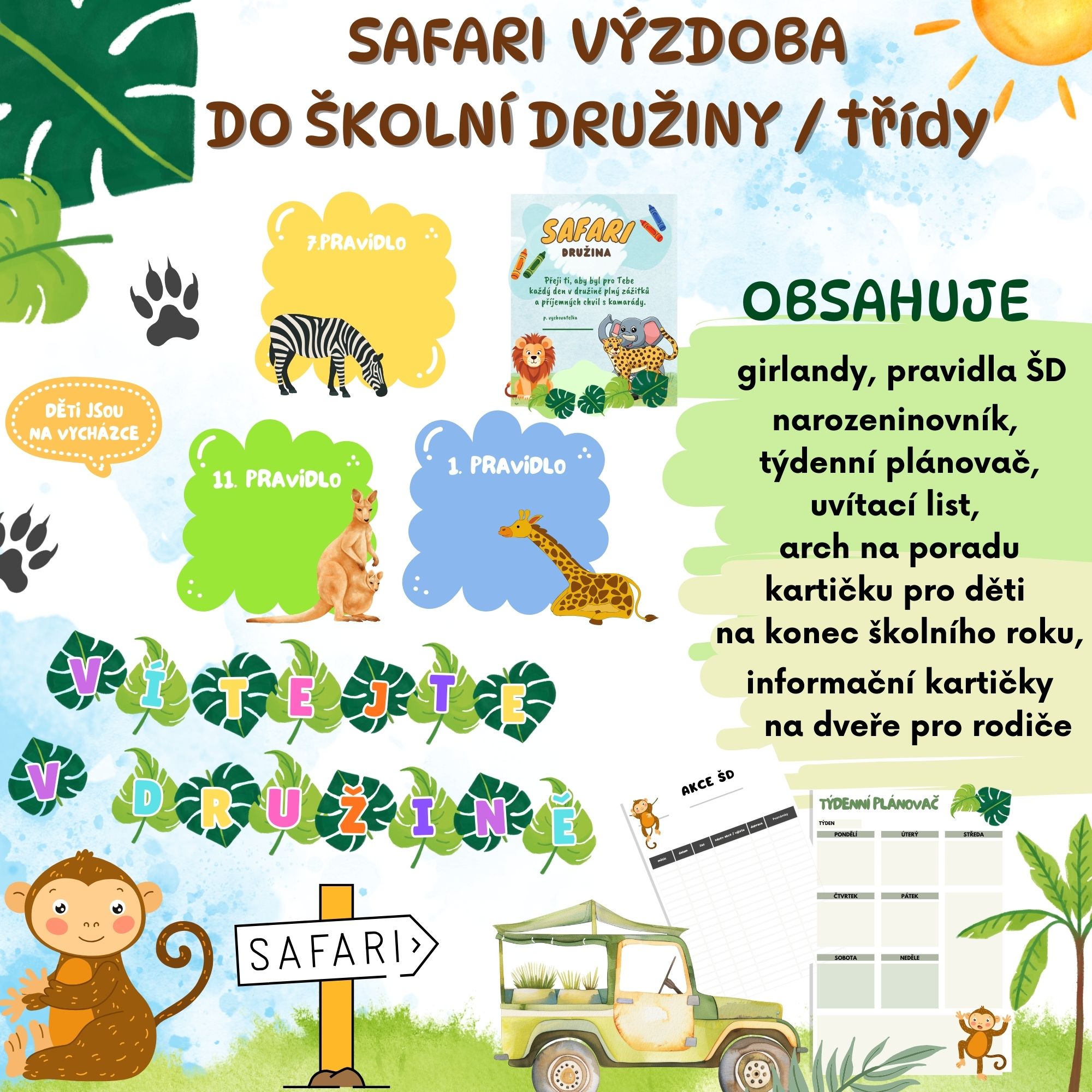 - GIRLANDY - Vítejte v družině, SAFARI a NAŠE DRUŽINA - stačí vytisknout, zalaminovat