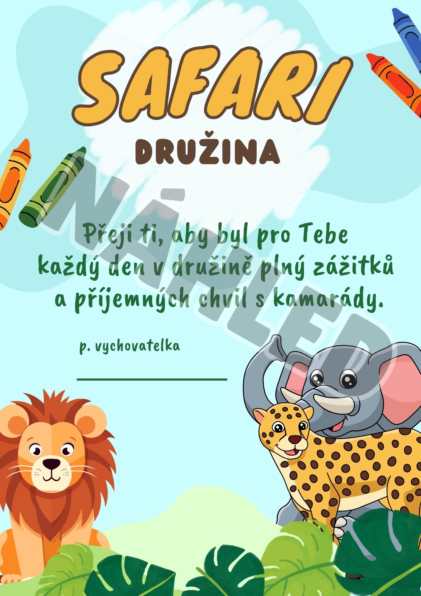 - KARTIČKY S PŘÁNÍM PRO DĚTI od p. vychovatelky nebo p. učitelky