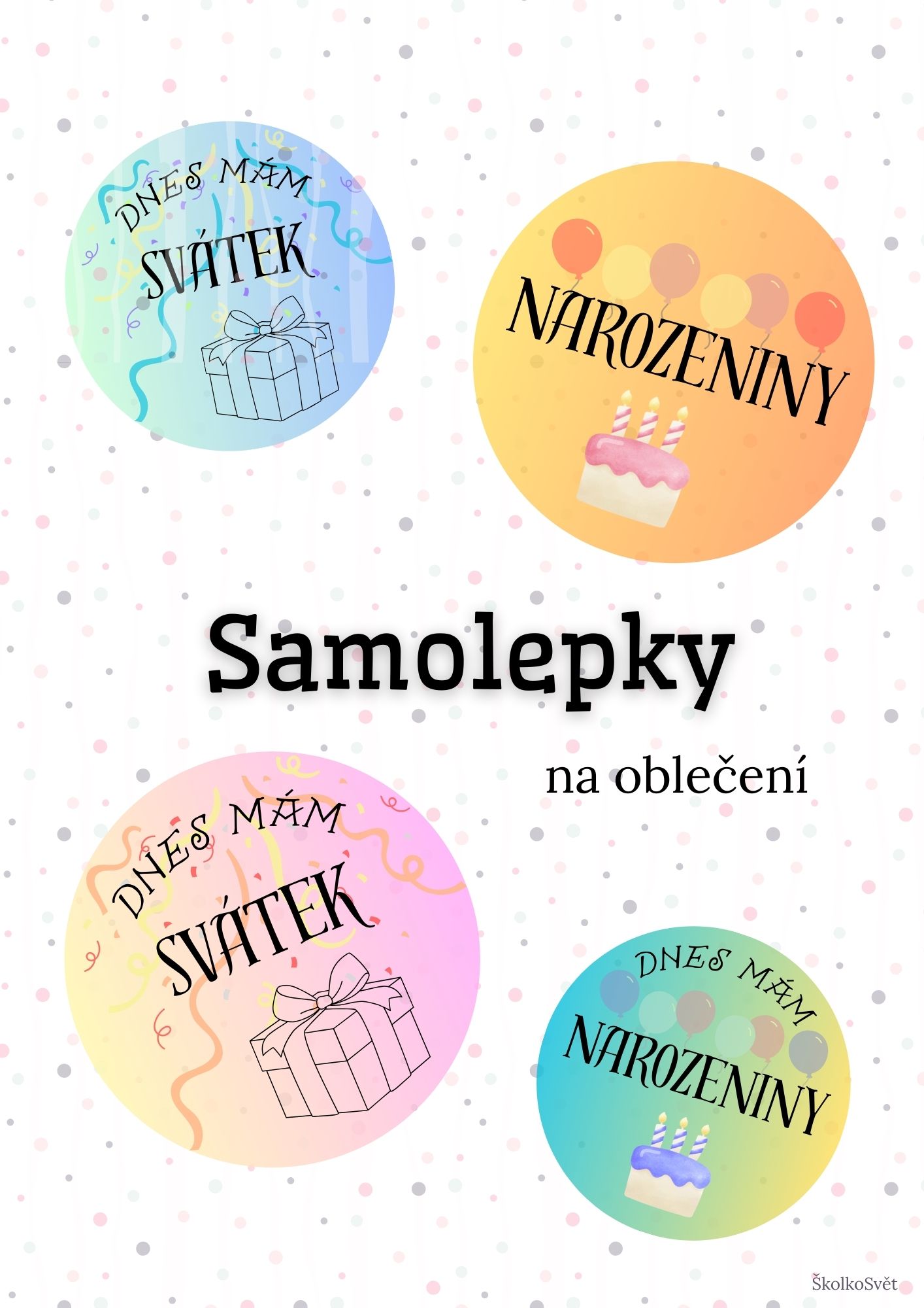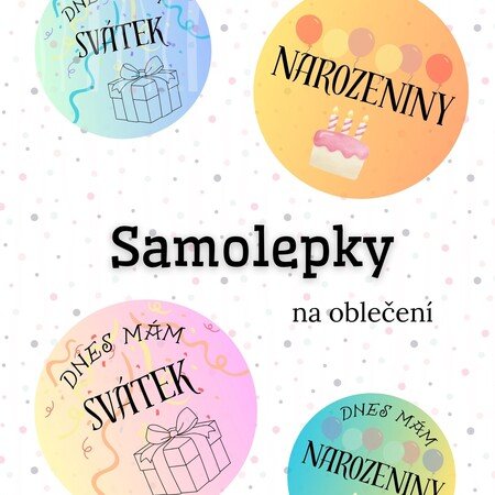 Soubor je určen k vytištění na samolepící papír a použití jako samolepky na oblečení dětí k oslavě svých narozenin nebo svátku.