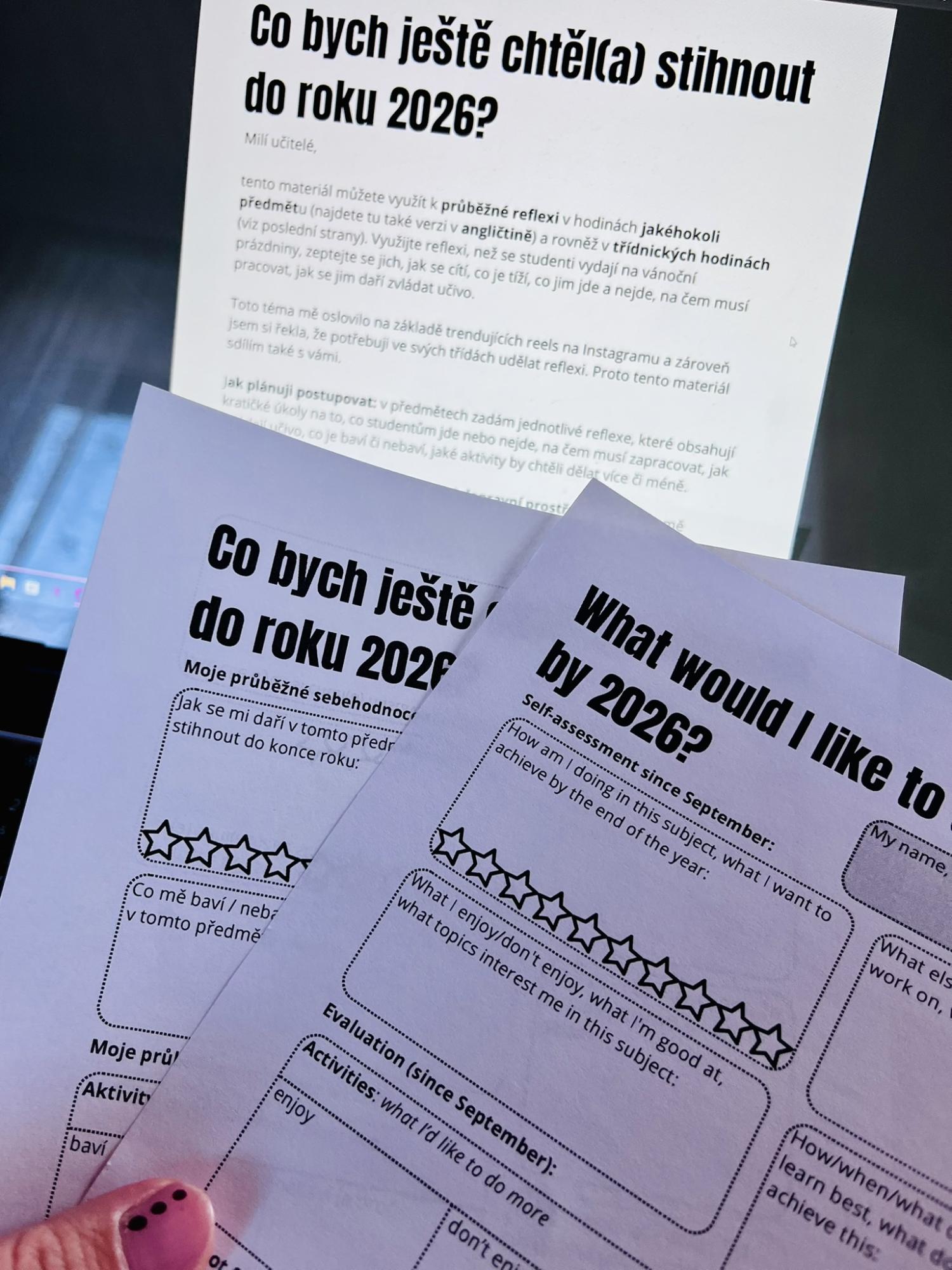 Praktické pracovní listy k (sebe)hodnocení a stanovení cílů do roku 2026. Ušetří vám přípravu třídnických hodin i výuky, žáci se zamyslí nad pokroky a konkrétními kroky, které chtějí zvládnout. (SŠ, 9. třída)