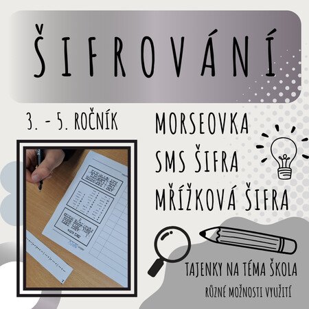 Materiál obsahuje 3 druhy šifer – MORSEOVKA, SMS A MŘÍŽKOVÁ ŠIFRA. Děti se naučí luštit pomocí klíčů.