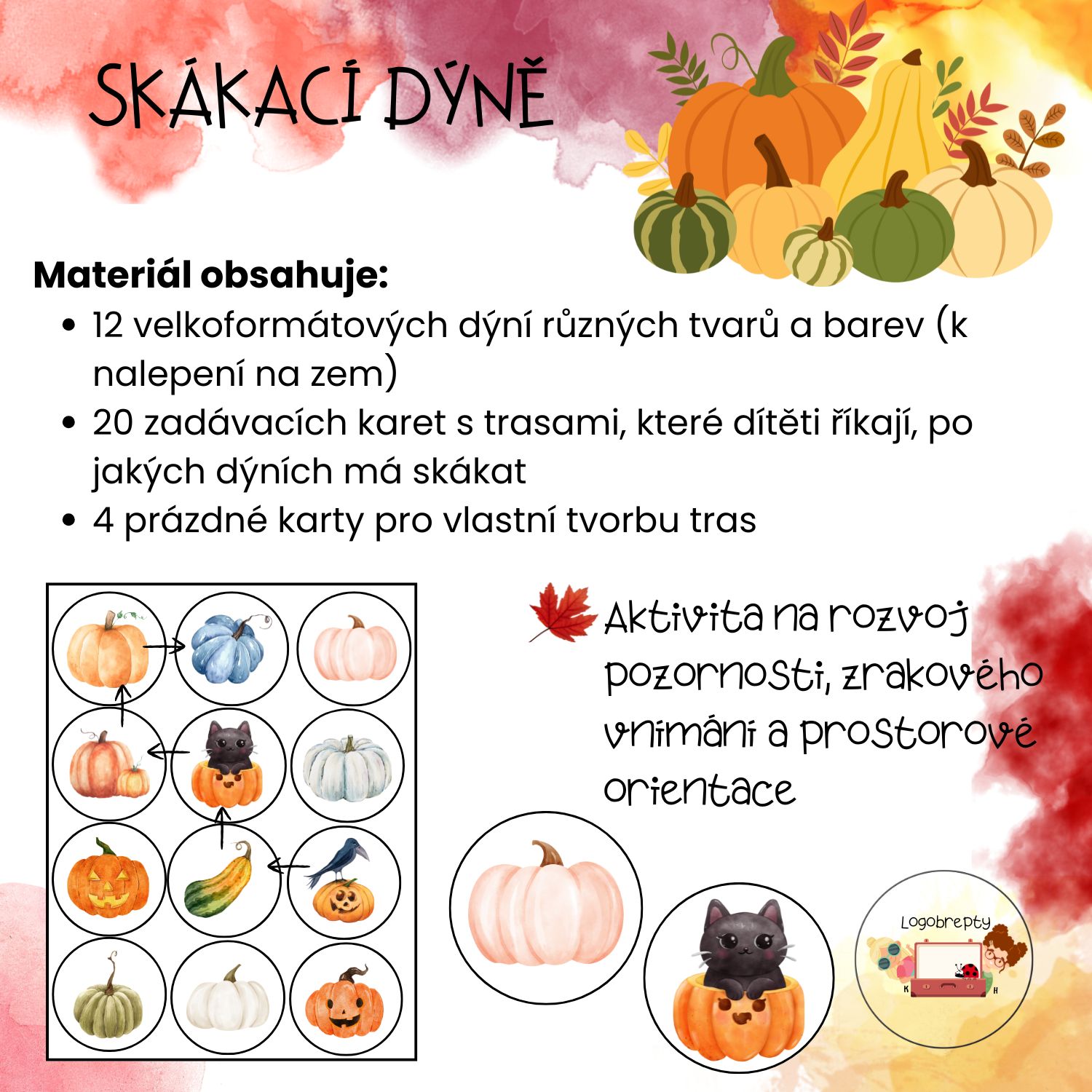 Barevné dýně lákají k pohybu a motivují děti ke spolupráci i soutěžení. Aktivitu lze využít při podzimních tématech, Dýňovém dni nebo jako součást pohybových chvilek ve školce.