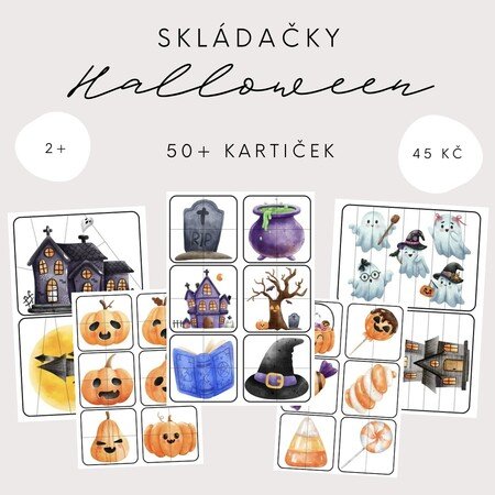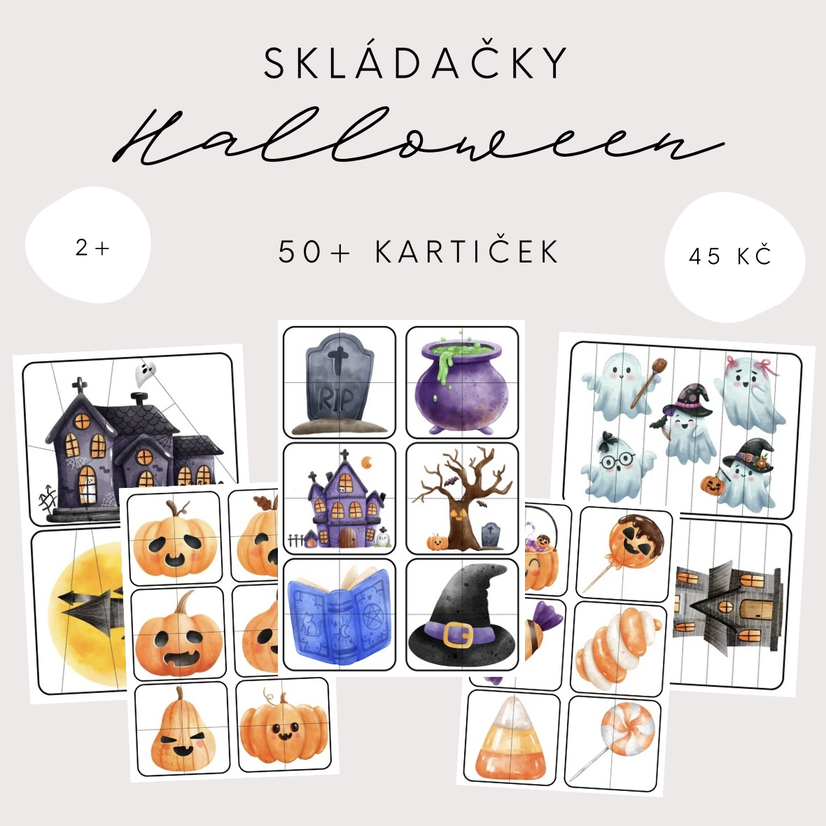Představujeme Vám náš soubor skládaček na téma Halloween, který je určen dětem předškolního věku. Materiál obsahuje více než 50 obrázků ke skládání, a to hned ve 4 variantách obtížnosti, takže si můžete vybrat tu, která bude pro děti nejvhodnější.