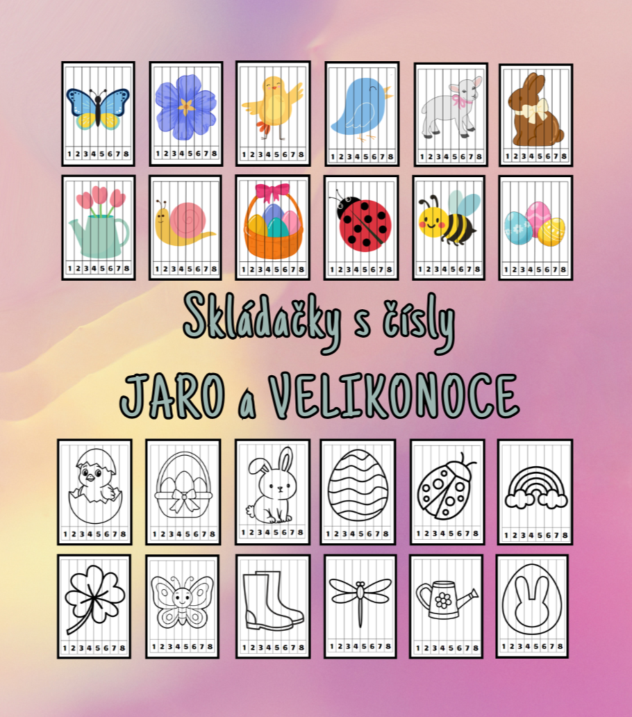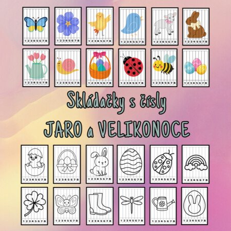 - sadu 24 skládaček s čísly s krásnými motivy jara a Velikonoc