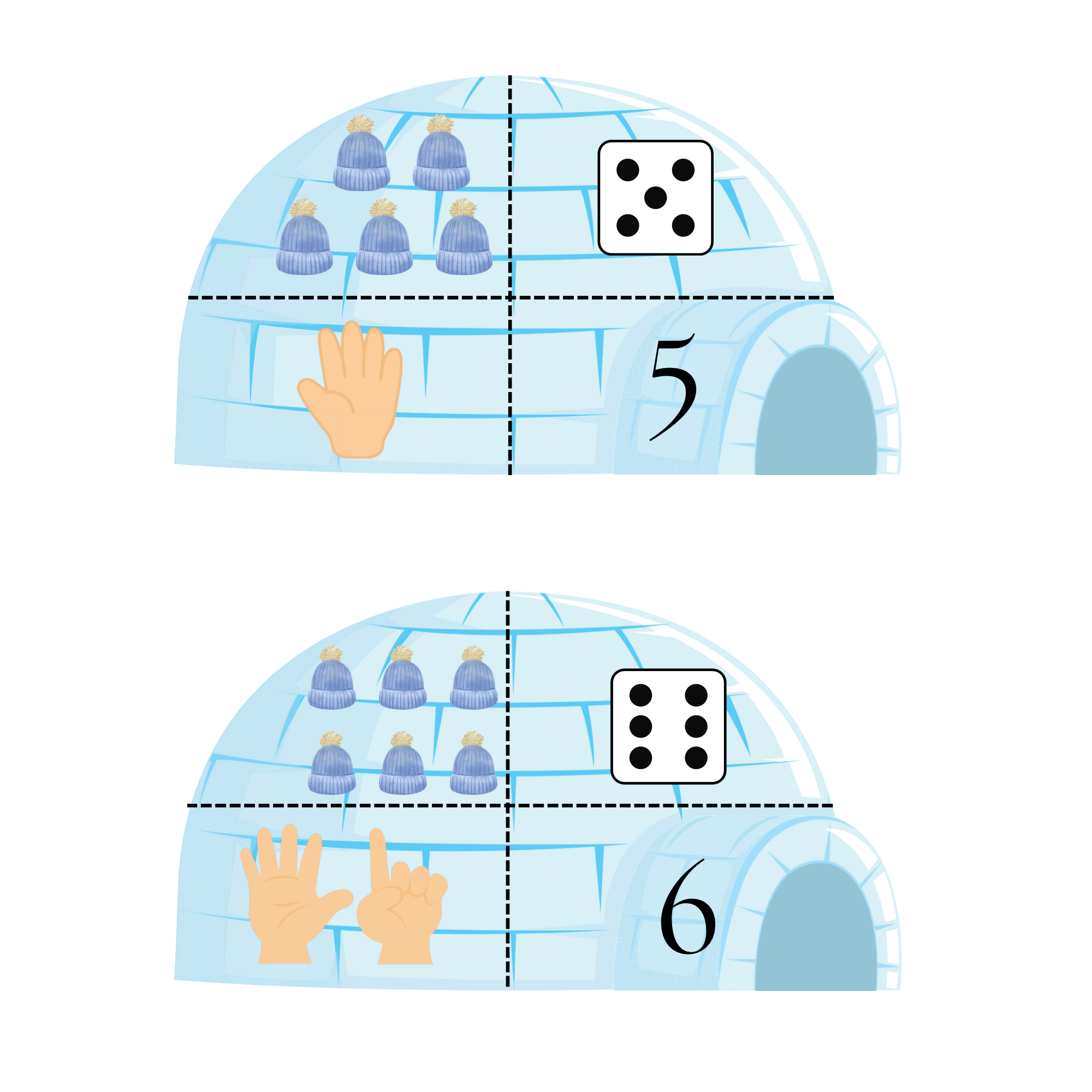 Materiál obsahuje 10 kompletních iglú, jedno pro každé číslo od 1 do 10. Každé iglú je rozděleno na čtyři dílky puzzle, které musí děti správně složit:
