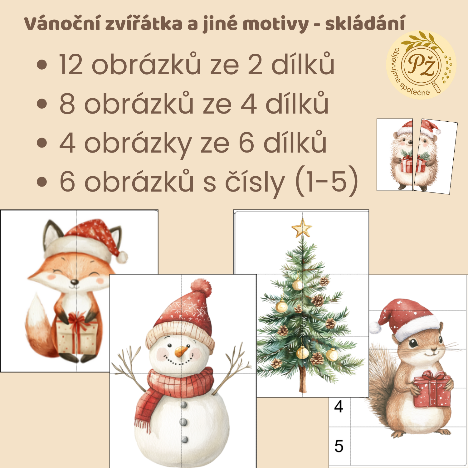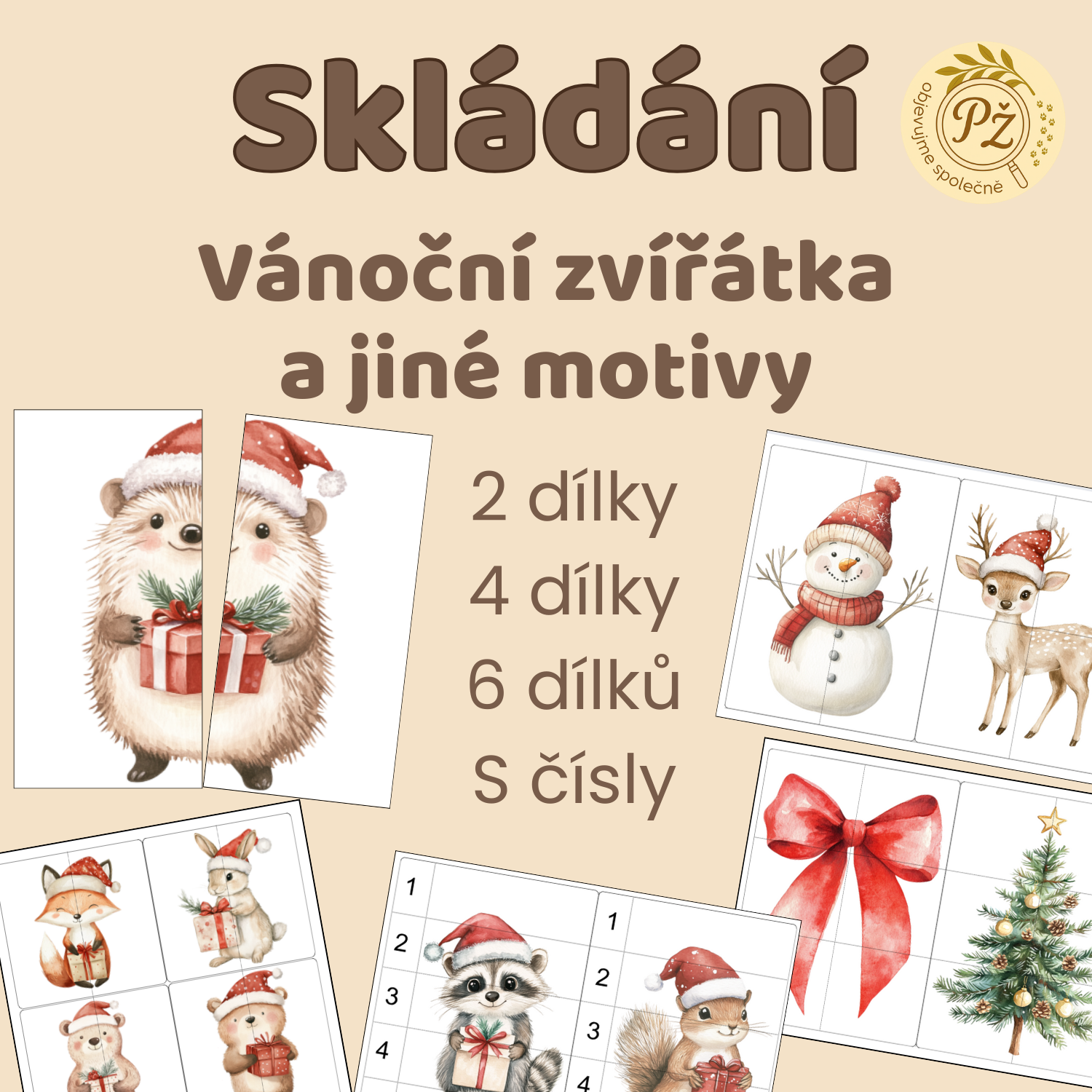 Připravila jsem jednoduché skládačky pro malé děti se zvířátky a vánočními motivy. Skládání rozvíjí jemnou motoriku, logické myšlení, zrakové vnímání, u obrázků s čísly navíc rozpoznávání čísel. Mimo to trénuje trpělivost, sebedůvěru, či rozšiřování slovní zásoby.