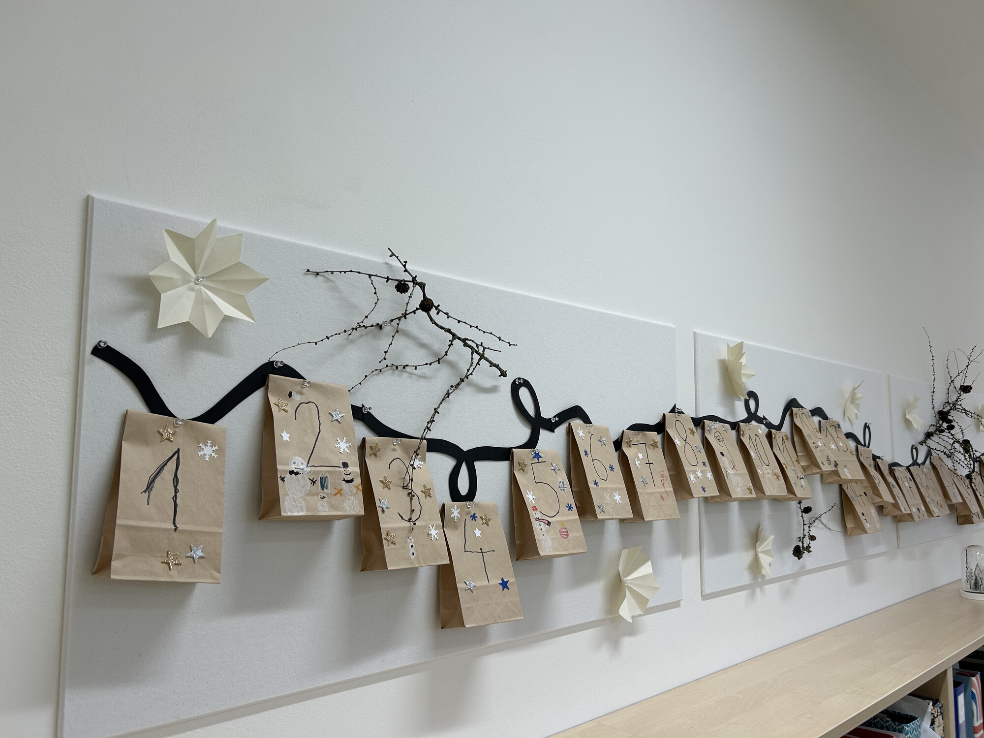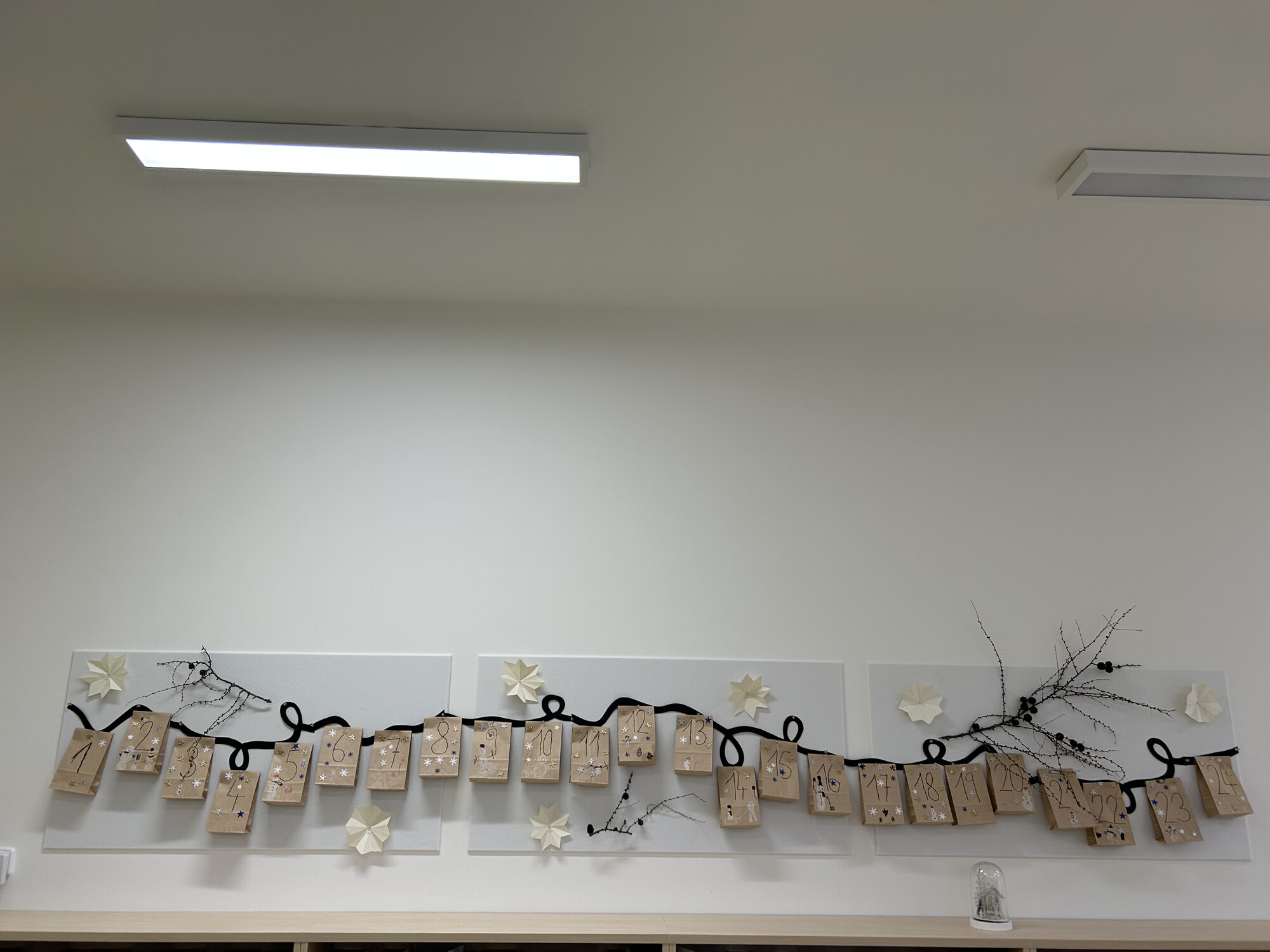 - vlastnoručně vyrobeného adventního kalendáře (kapsičky, pytlíčky, obálky, krabičky)