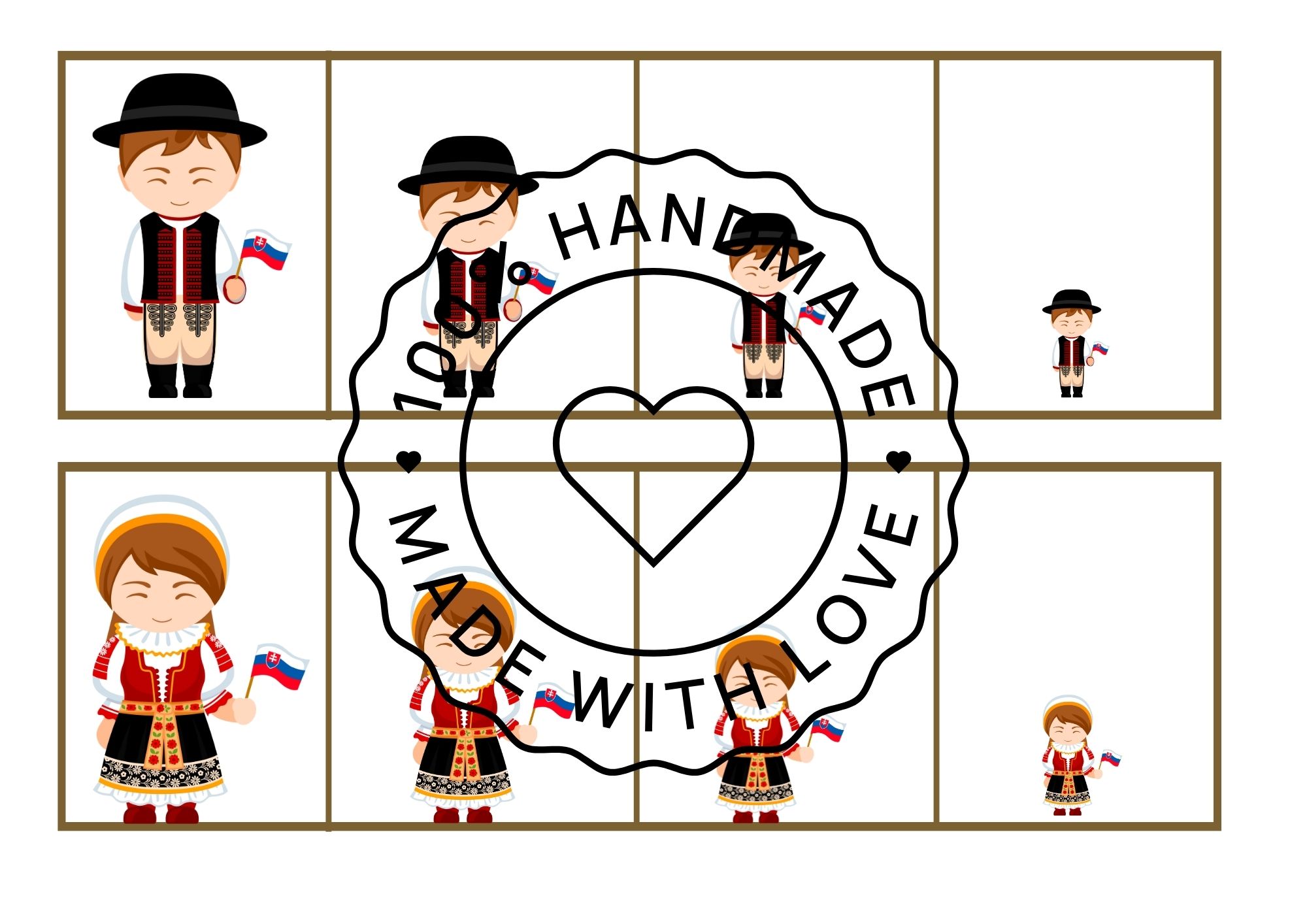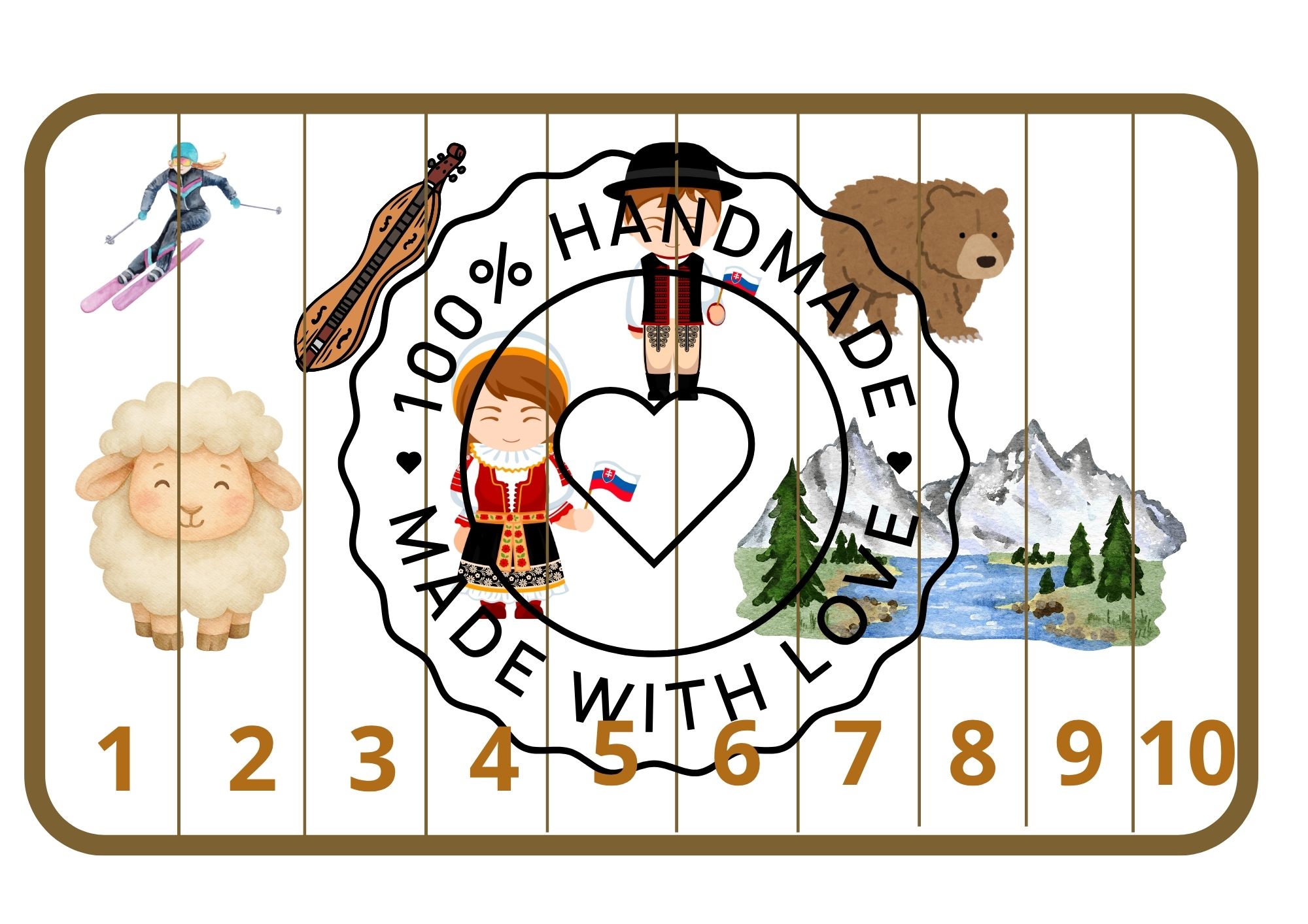 - Skládání obrázku z více částí: děti skládají typické motivy Slovenska (Tatry, salaš, vlajka, kroje).