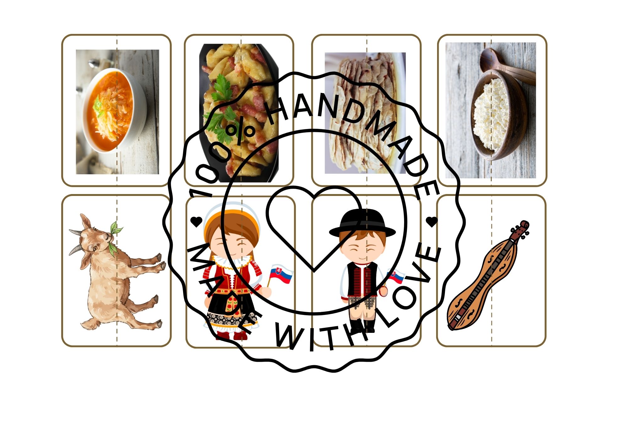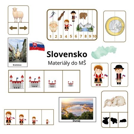 - Spojování dvojic: hledání dvou částí, které tvoří jeden typický obrázek Slovenska.