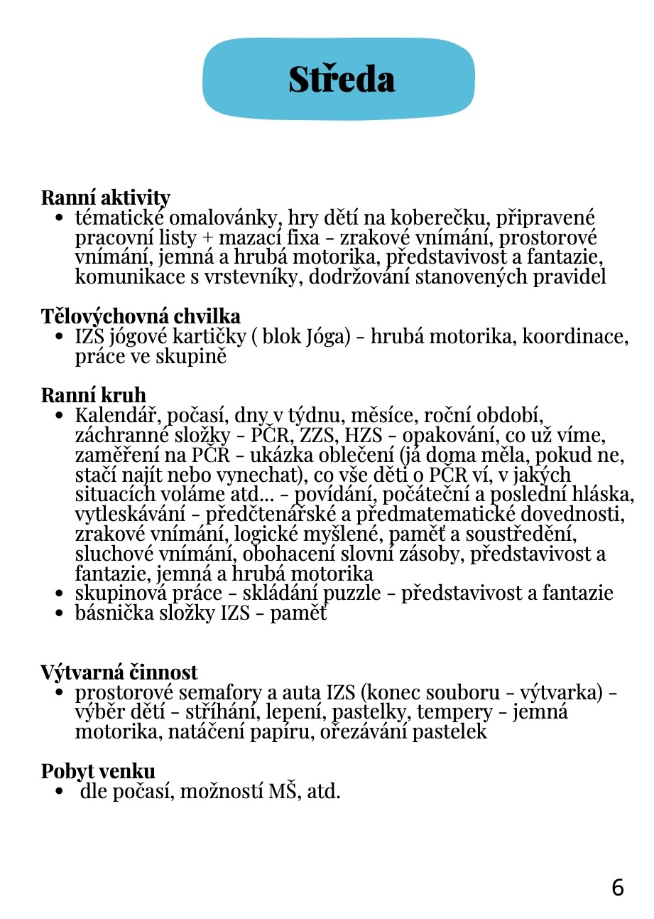 - týdenní plán činností (pondělí–pátek)