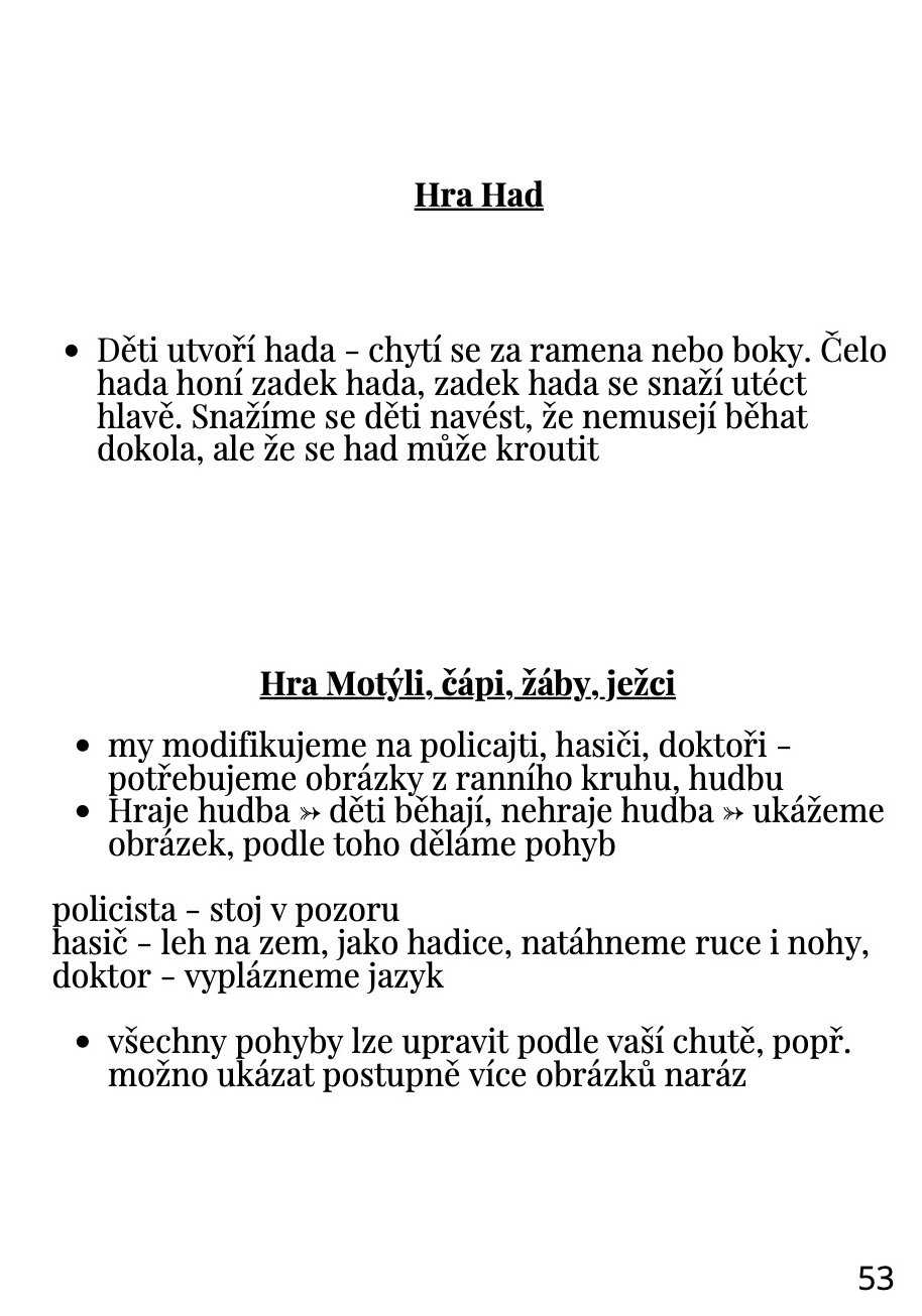 - básničky, písničky a pohybové hry