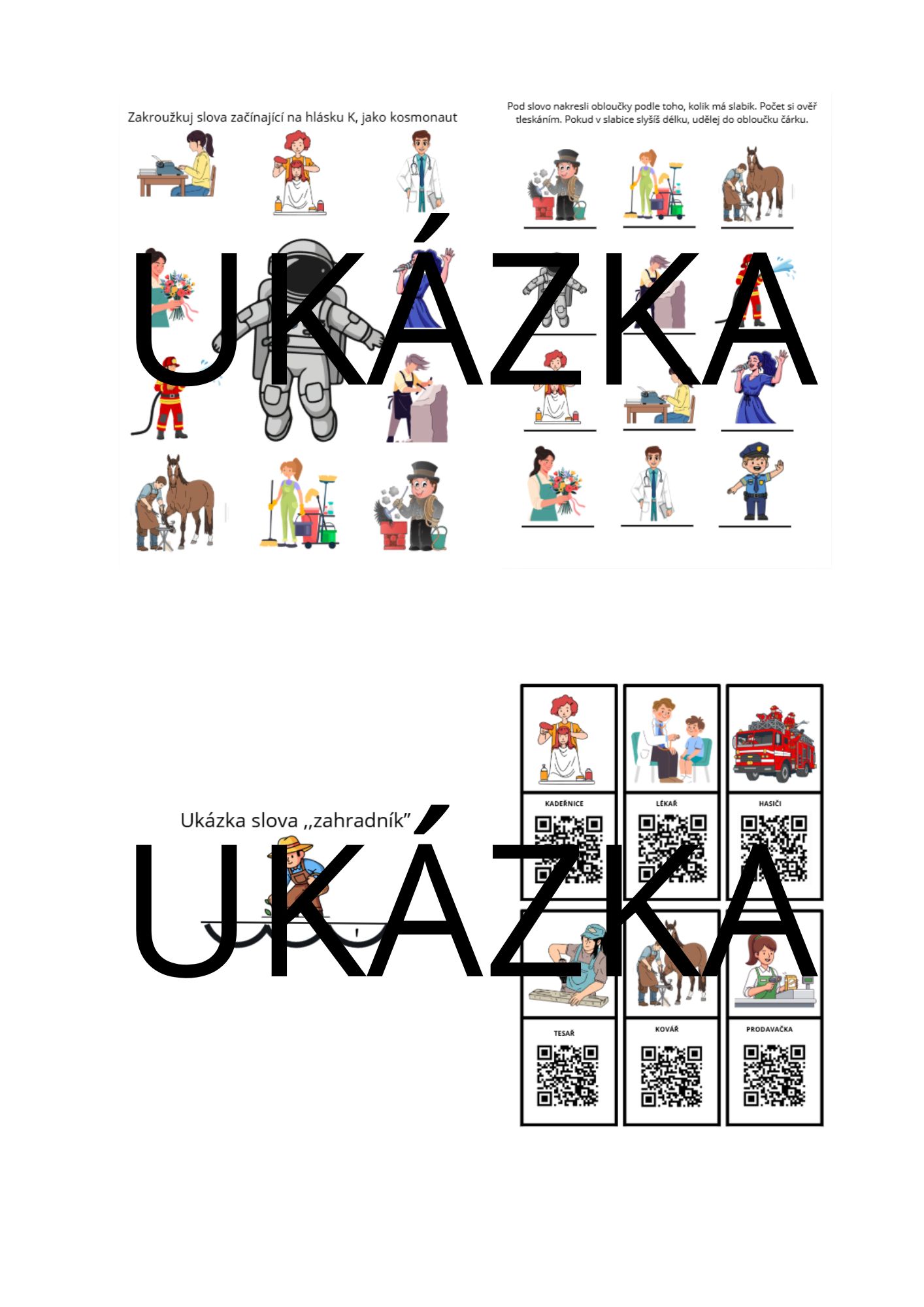 - Hledáme první hlásku: Hravý trénink identifikace počátečního zvuku ve slovech z oblasti různých profesí.