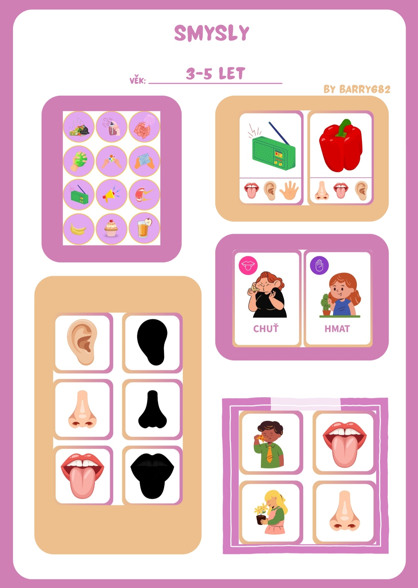 Obsahuje: stíny, schované obrázky- přiřazovačka, přiřazování příkladů ke smyslům, demonstrační karty (5)
