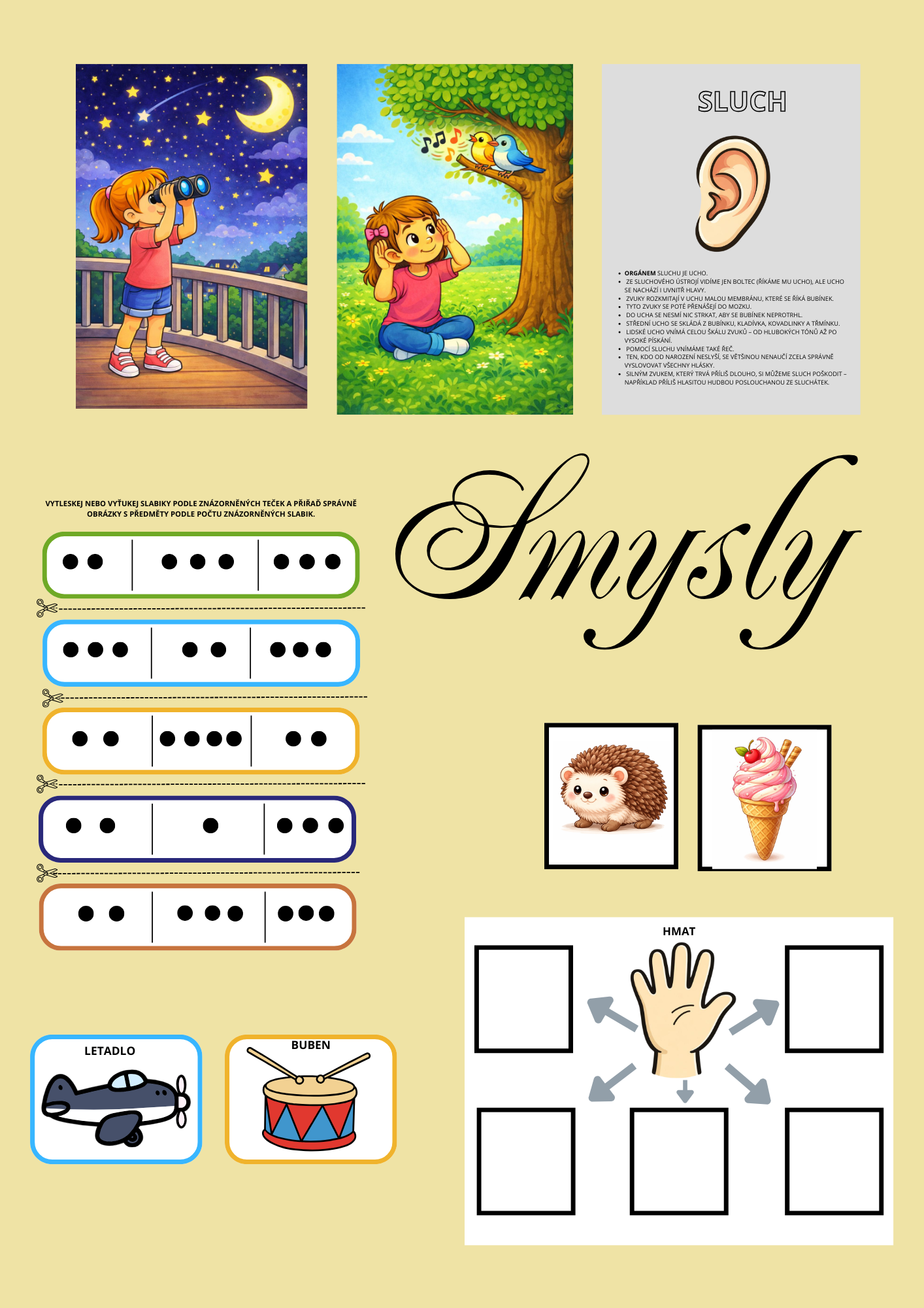 - přiřazování obrázků ke správnému smyslu / kontrolní karty