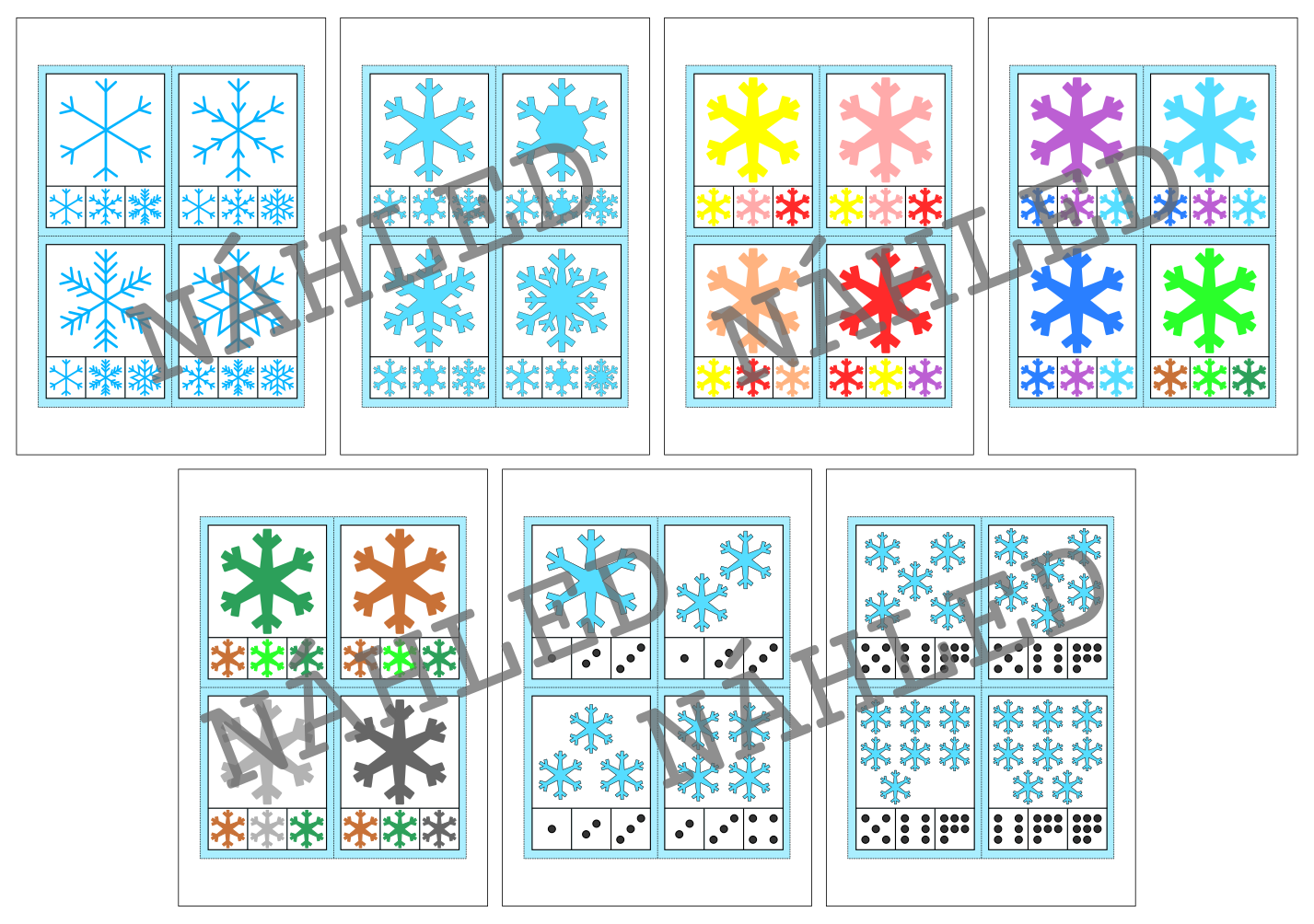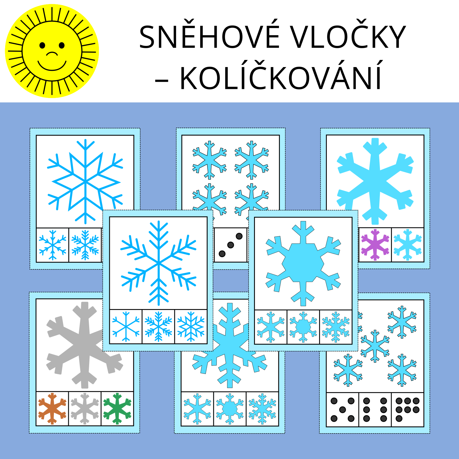 Materiál na téma sněhové vločky slouží k procvičení zrakového vnímání a počítání. Je vhodný i k tématu zima. Obsahuje 28 kartiček.