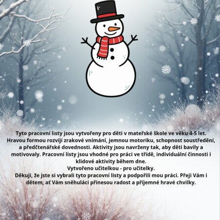 Děkuji, že jste si vybrali tyto pracovní listy a podpořili mou práci. Přeji Vám i dětem, ať Vám sněhuláci přinesou radost a příjemné hravé chvilky.