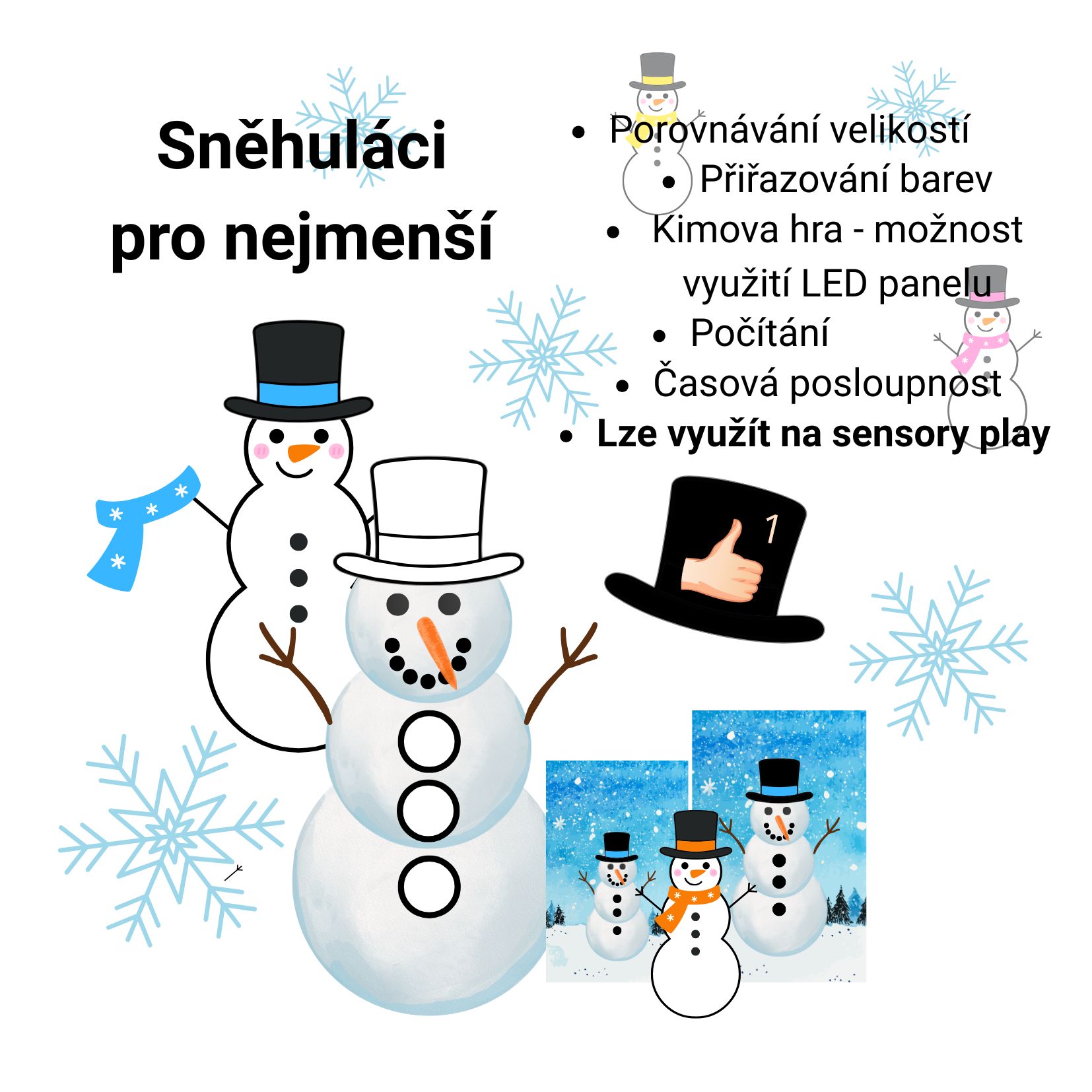 Sněhuláci pro nejmenší je soubor, ve kterém si děti procvičí: