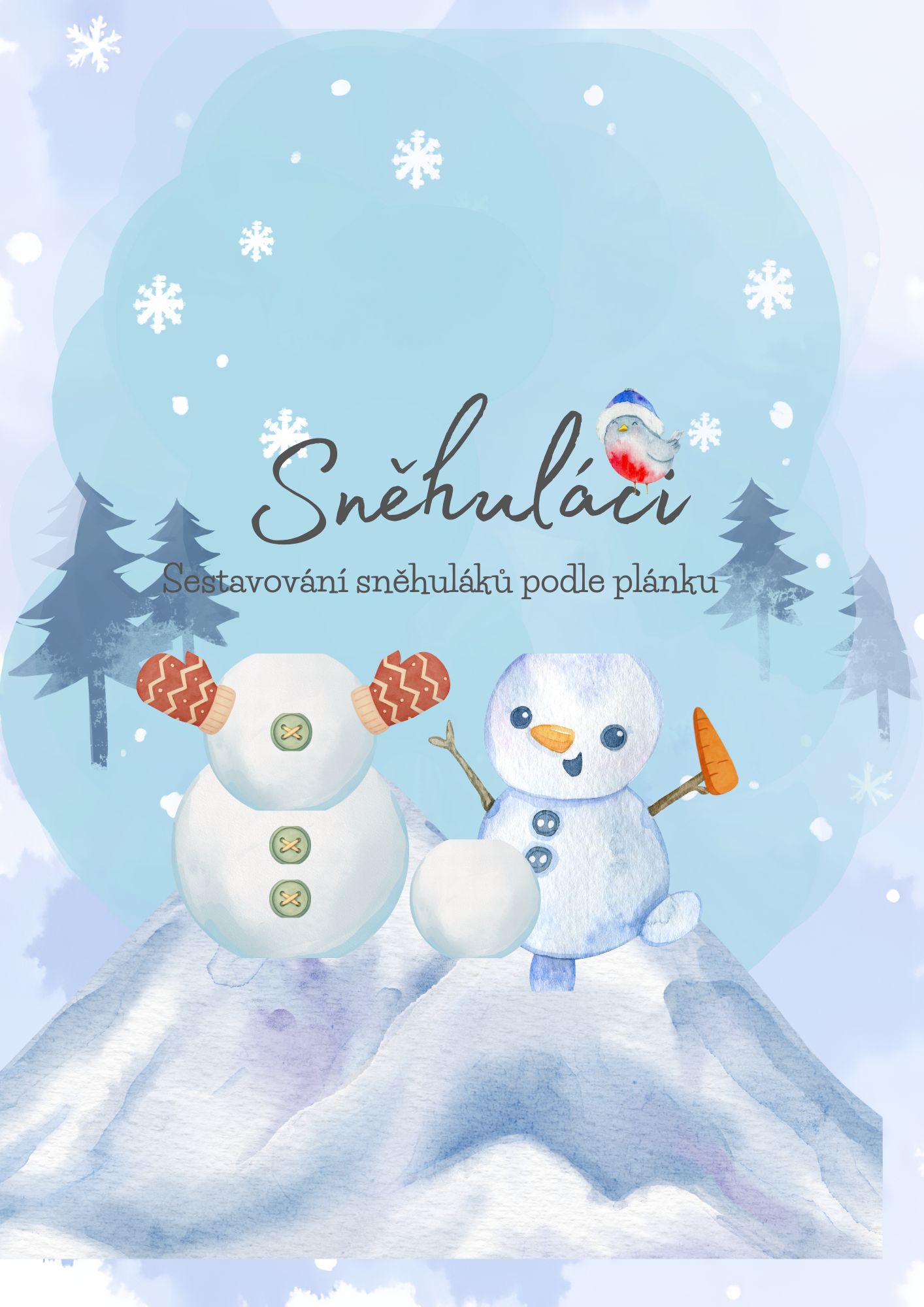 Úkolem dětí je podle předlohy správně sestavit sněhuláka, rozpoznat jednotlivé části a poskládat je ve správném pořadí. Aktivita rozvíjí zrakové vnímání, logické myšlení a schopnost práce podle vzoru.