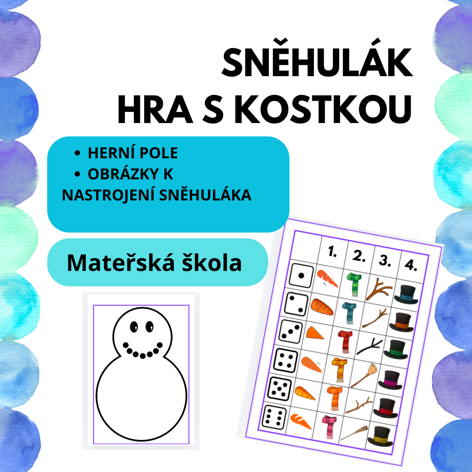 Zábavná hra, u které děti při házení kostkou nastrojí svého sněhuláka. 😊☃️