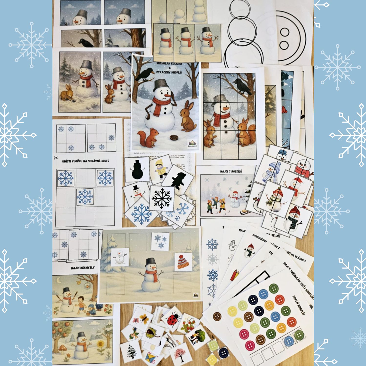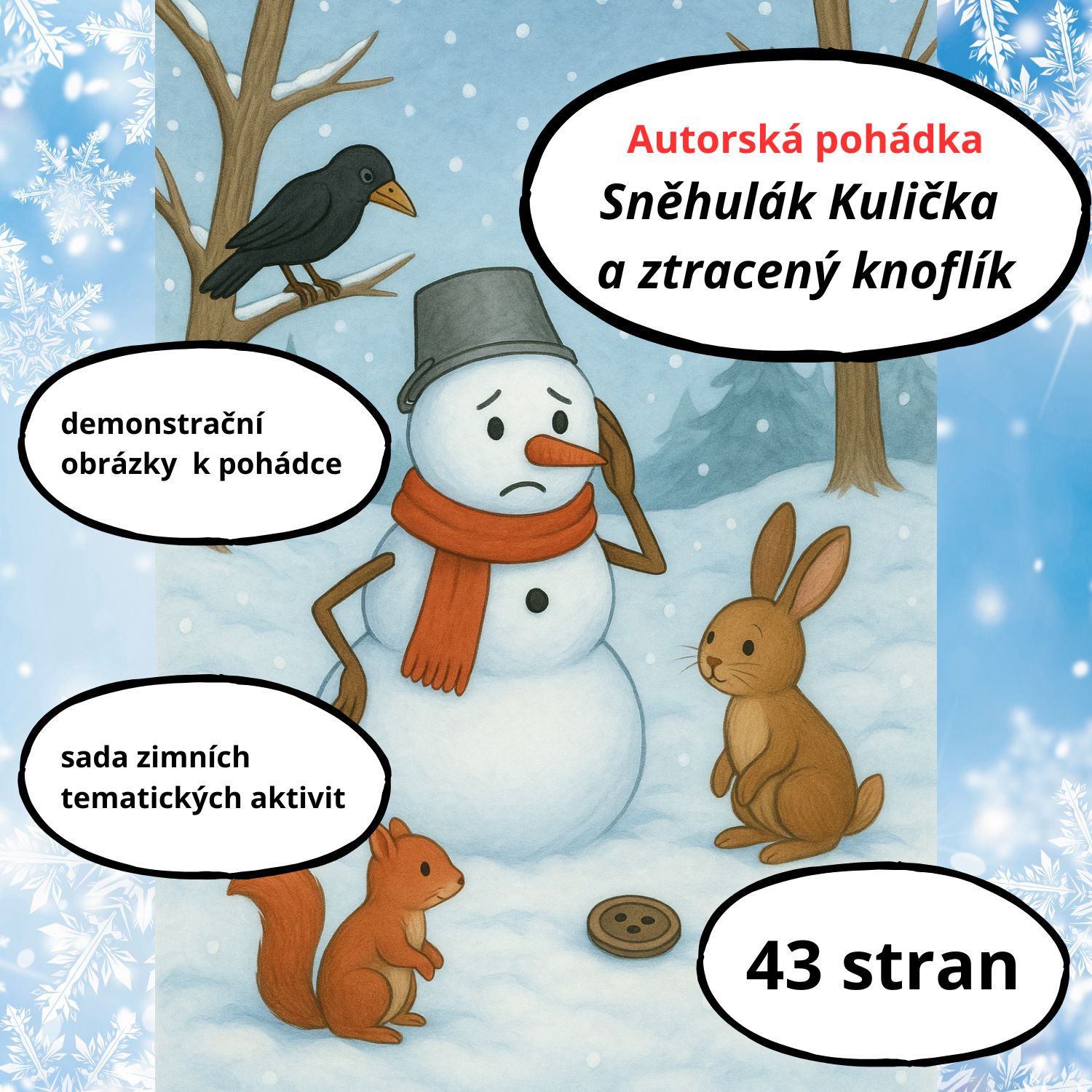 Tento zimně laděný materiál vznikl jako podpora rozvoje dětí prostřednictvím původní pohádky „Sněhulák Kulička a ztracený knoflík“, která dětem přináší poselství o přátelství, pomoci a radosti ze spolupráce.